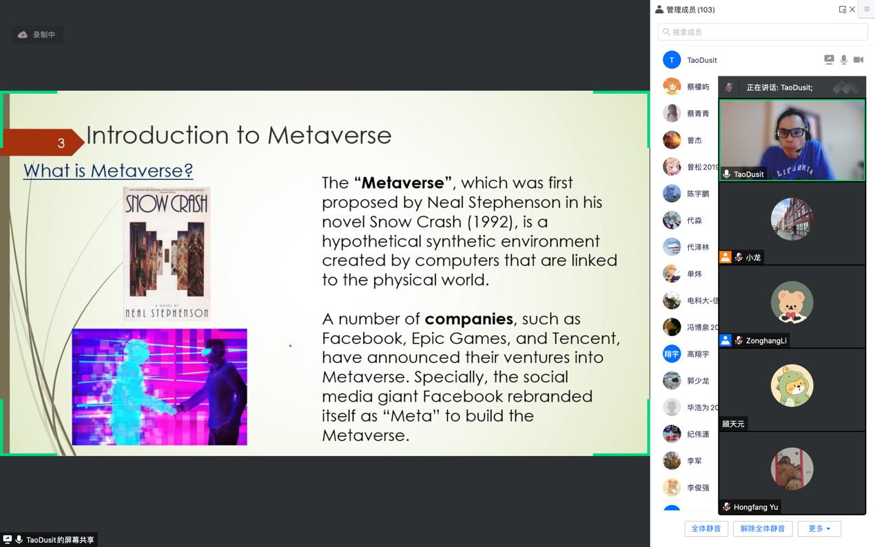 12月28日上午,由人力资源部教师发展中心主办、william英国中文承办的“名师讲堂”邀请到IEEE Fellow、新加坡南洋理工大学计算机科学与工程学院的Dusit Niyato教授,作主题为“Metaverse Virtual Service Management: Game Theoretic Approaches”的线上精彩报告。本次学术交流活动由william英国中文虞红芳教授主持,150余位师生踊跃参与。元宇宙是继Web和移动互联网革命之后的下一代互联网技术。在元宇宙中,人的数字化...