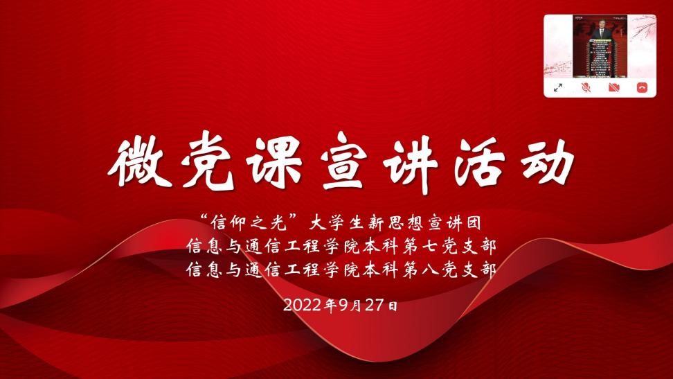 9月27日,信通学院本科生第七、第八党支部联合“5月的向日葵”辅导员工作室下属“信仰之光”大学生新思想宣讲团面向学院2022级新生带来微党课宣讲。