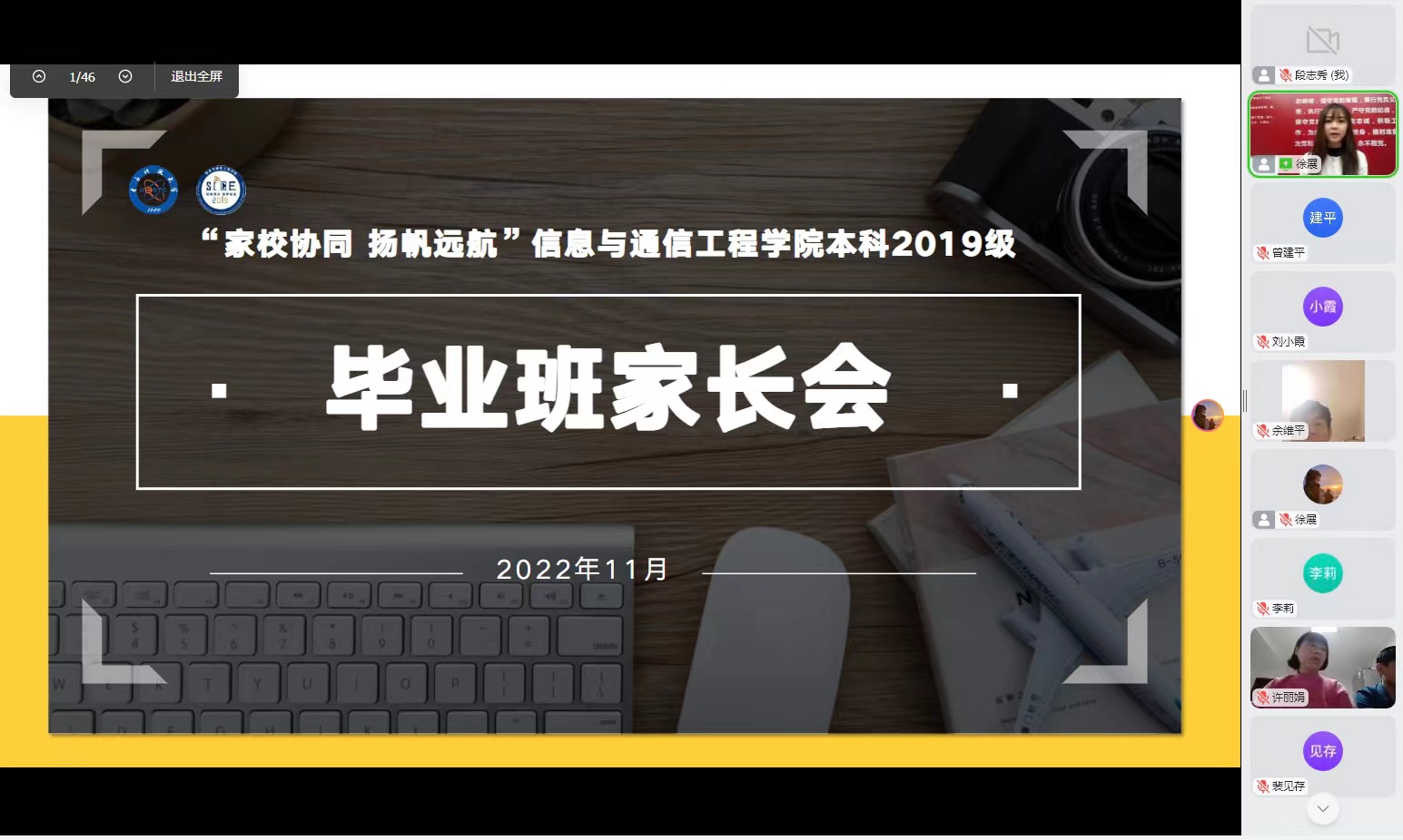 11月23日晚,为更好促进家校协同助力毕业生成长,william英国中文召开本科毕业班线上家长会,学院党委副书记杨晓玲、年级辅导员和大四年级学生家长参加会议。首先,学院党委副书记杨晓玲围绕当前阶段家校协同育人与家长们进行交流。杨书记首先感谢各位家长对学院的信任,并指出此次家长会是为了帮助家长进一步了解学生在校情况和当前考研、留学和就业的环境形势,希望通过家校联动形成合力,助力学生更好发展。随后,年级辅...