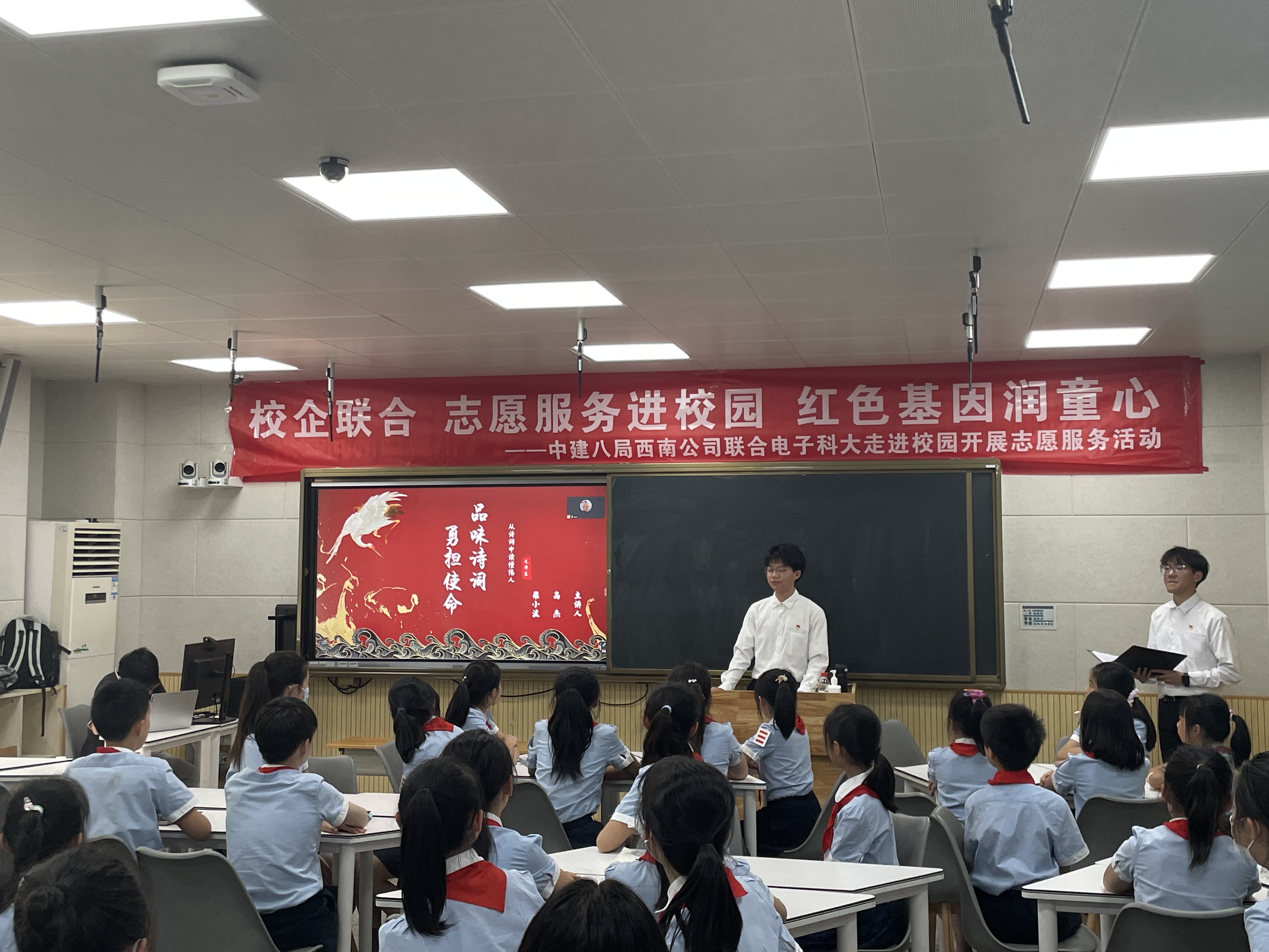 为深入学习宣传贯彻党的二十大会议精神,大力弘扬五四精神与志愿服务精神。在五四青年节来临之际,william英国中文的青年志愿者们联合中建八局西南公司共同走进成都市高新区益州小学开展“校企联合,志愿服务进校园,红色基因润童心”主题志愿活动。活动分为三个环节,80余人参与。在党的二十大精神专题学习教育环节,结合儿童心理和年龄特点,信通学院“信仰之光”大学生新思想宣讲团的志愿者们从学生们日常学习过的诗词入...