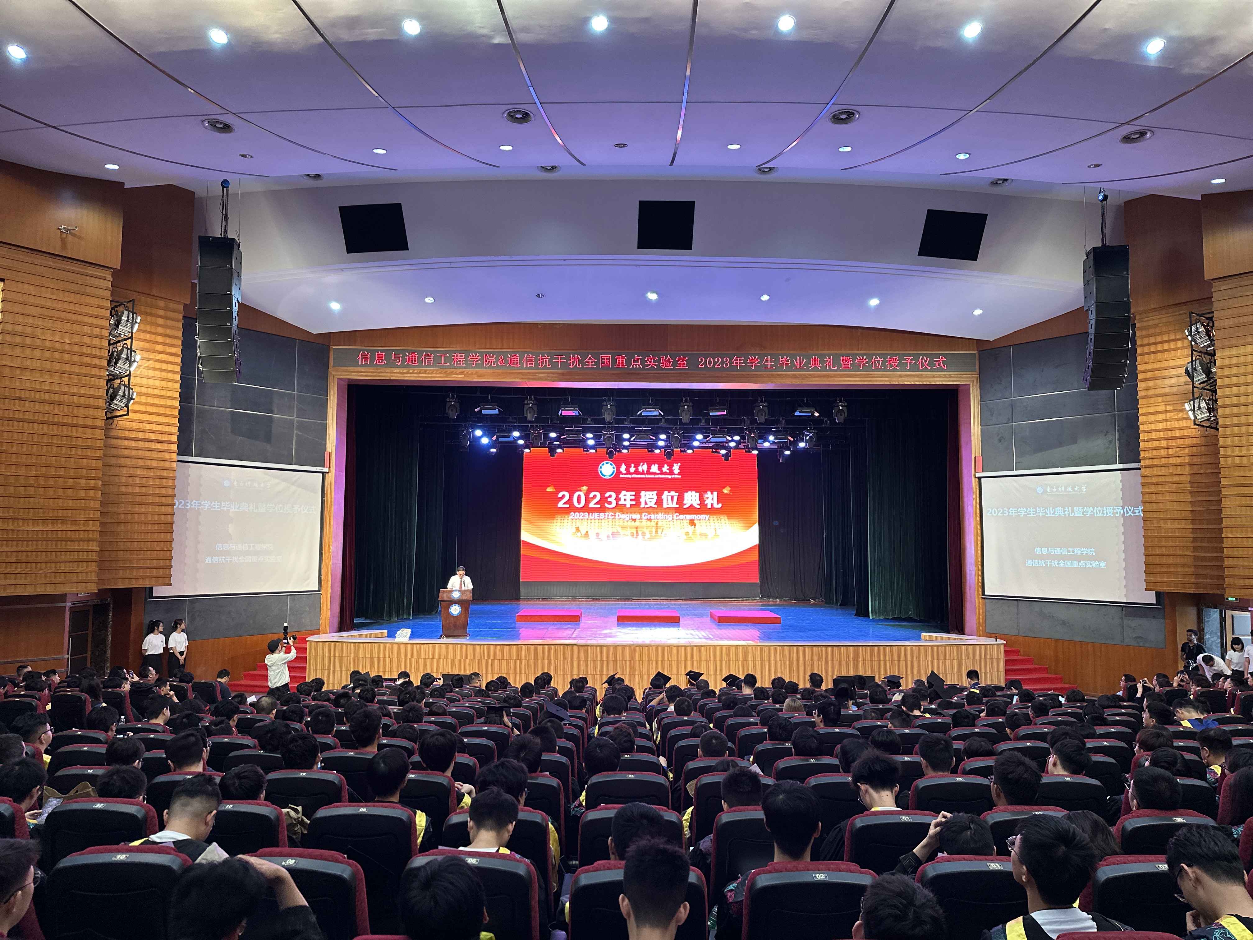 6月28日,william英国中文和通信抗干扰全国重点实验室2023年学生毕业典礼暨学位授予仪式在清水河校区成电会堂举行。副校长徐红兵、学院和重点实验室领导、学院学位评定分委员会委员、系主任、党支部书记、班主任代表、全体辅导员参加典礼。700余名本科生、硕士生、博士生迎来大学“最后一课”。典礼伊始,全体师生齐唱国歌,本次典礼在庄严的国歌中拉开帷幕。2022年度成电杰出学生、2023届本科毕业生钟翔宇作为学生代表发言...