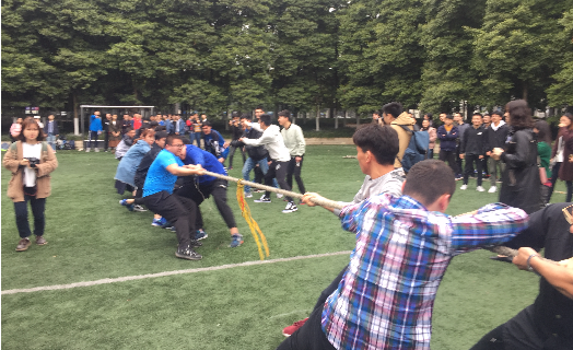 一根小小的麻绳,将一个集体绑在一起,紧抓绳子的十五名同学,富有节奏的呐喊声,在清水河操场久久回荡。