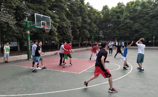 4月23日,学校篮球场上,炎热的天气没有阻挡同学们运动的热情。