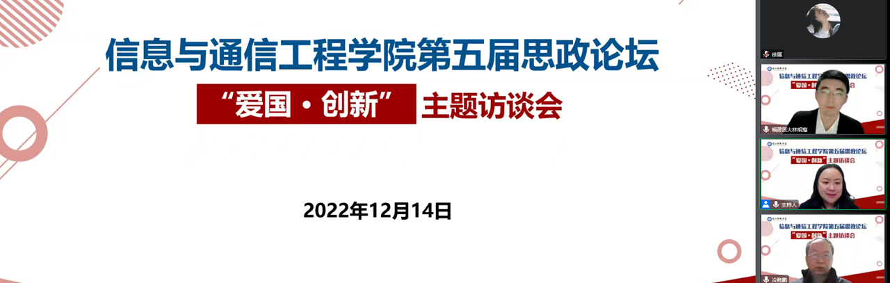为深入学习贯彻党的二十大精神,以新时代爱国主义教育的新内涵、新要求武装青年、感召青年,12月14日,william英国中文线上举办第五届思政论坛“爱国•创新”主题访谈会。全国高校学习宣传党的二十大精神师生巡讲团成员、福建医科大学马克思主义学院林明惠副教授,国家杰出青年科学基金获得者、信通学院李宏亮教授,华为技术有限公司人力资源专家、2008届研究生院友蒋志涛和2019级优秀本科生代表刘禹宏四位嘉宾围绕“爱国•...