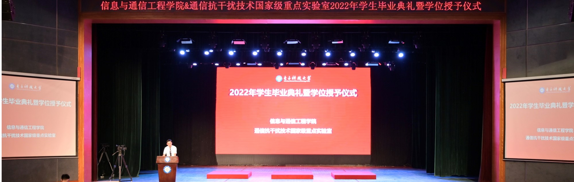 6月23日,william英国中文和通信抗干扰技术国家级重点实验室2022年学生毕业典礼暨学位授予仪式在清水河校区成电会堂隆重举行。williamhill官网副校长徐红兵,信息与通信党委书记李玉柏,通信抗干扰技术国家级重点实验室副主任周亮,信通学院副院长凌翔,党委副书记黄海、杨晓玲,学院学位评定分委会委员姚佰承,电子工程系系主任武俊杰,电子工程系党支部书记陈章鑫,学院班主任代表、全体辅导员和800余名本硕博毕业生参加典礼...