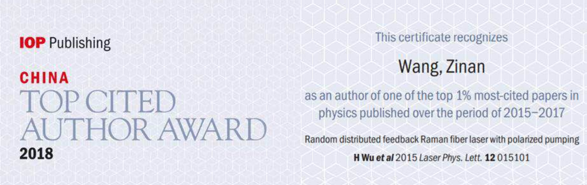 2018年8月23日,世界著名出版社--英国物理学会出版社(IOP Publishing)发布了“2018年度IOP中国高引作者奖榜单”。