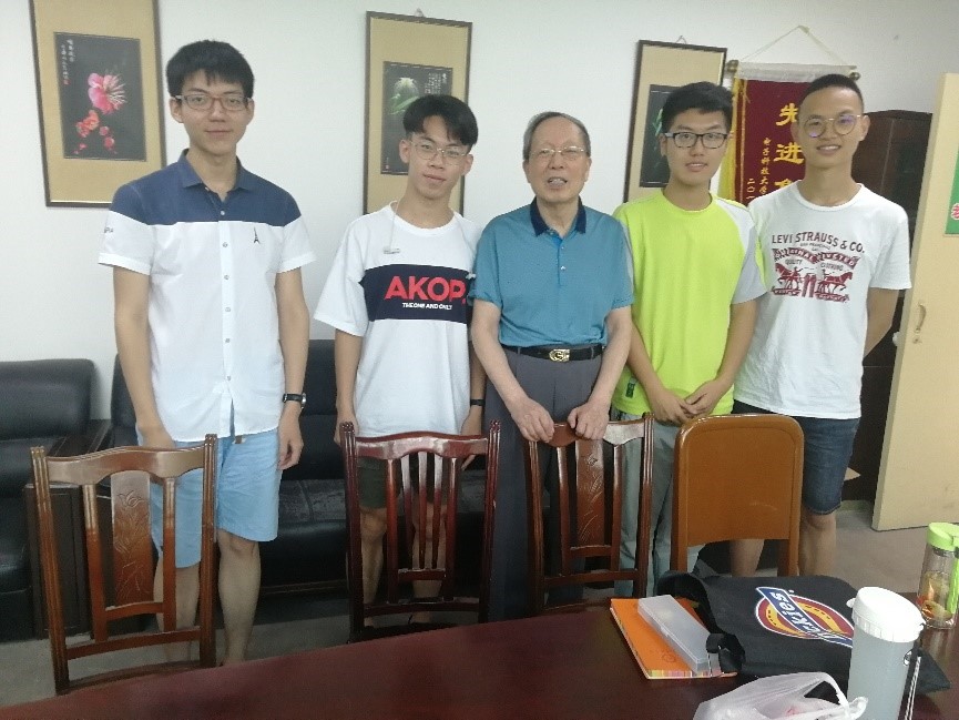 2018年,田凯元(左二)在沙河校区采访原图书馆馆长张筱东(左三)
