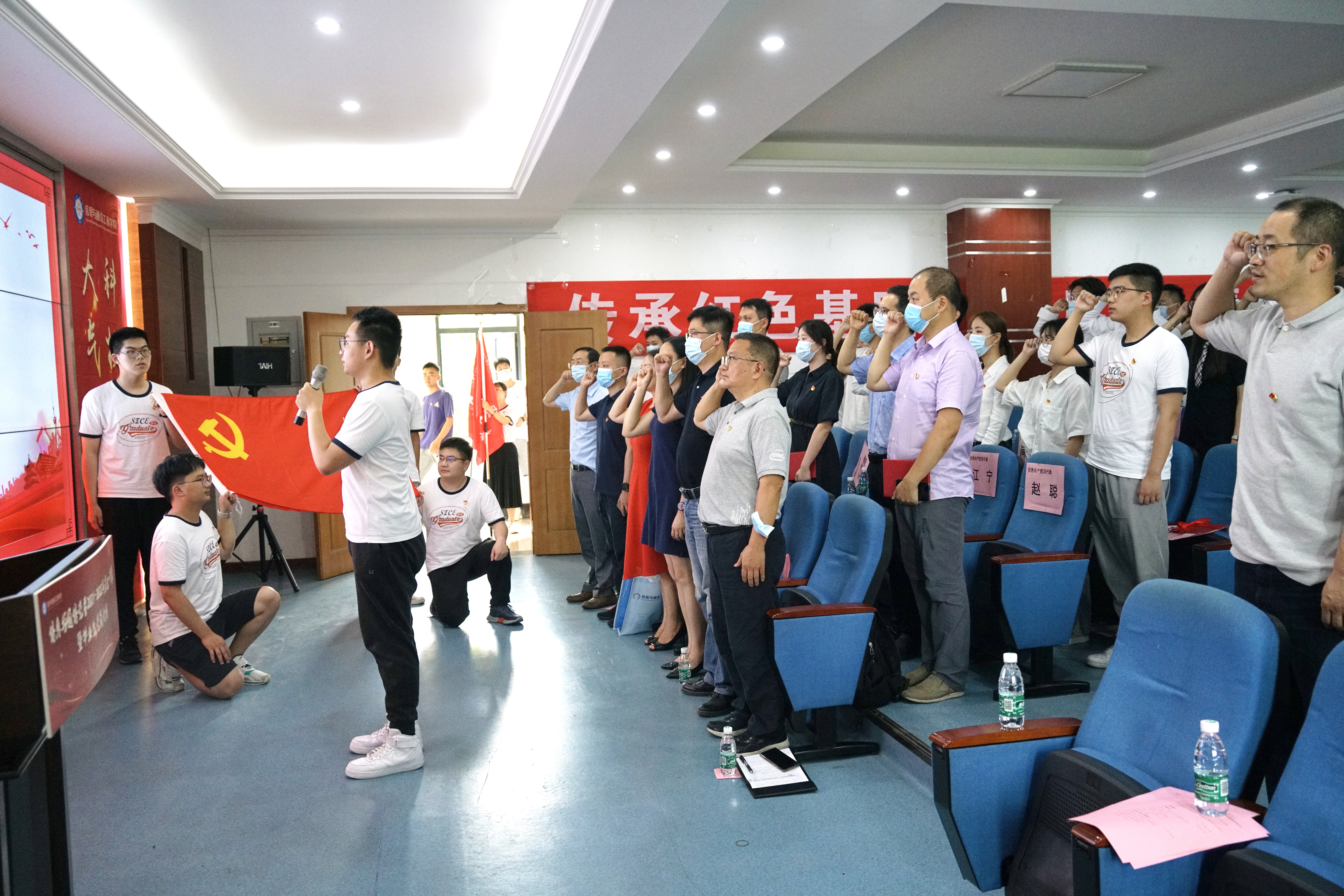 学院党委副书记黄海为师生党支部代表颁发“政治生日”纪念卡,全体党员重温入党誓词,进一步强化广大师生党员党的意识、党员意识。