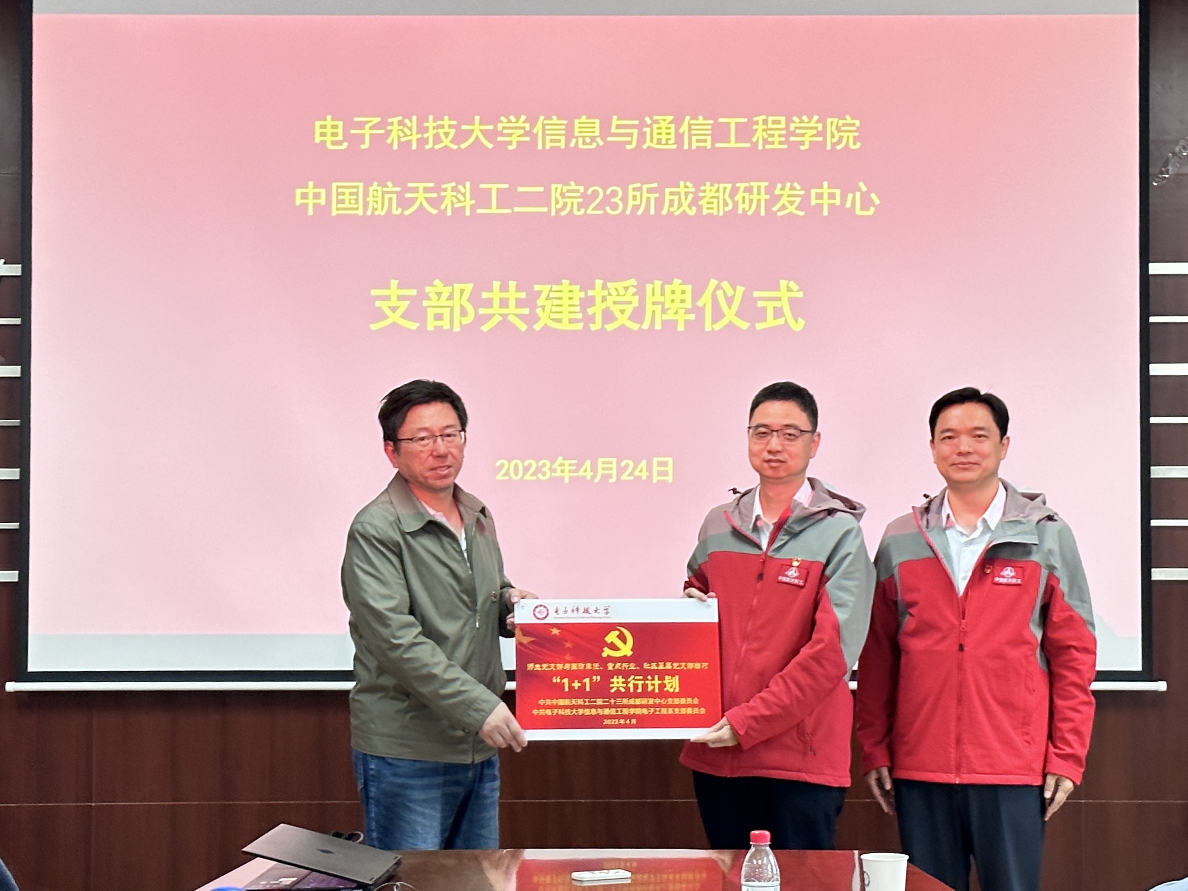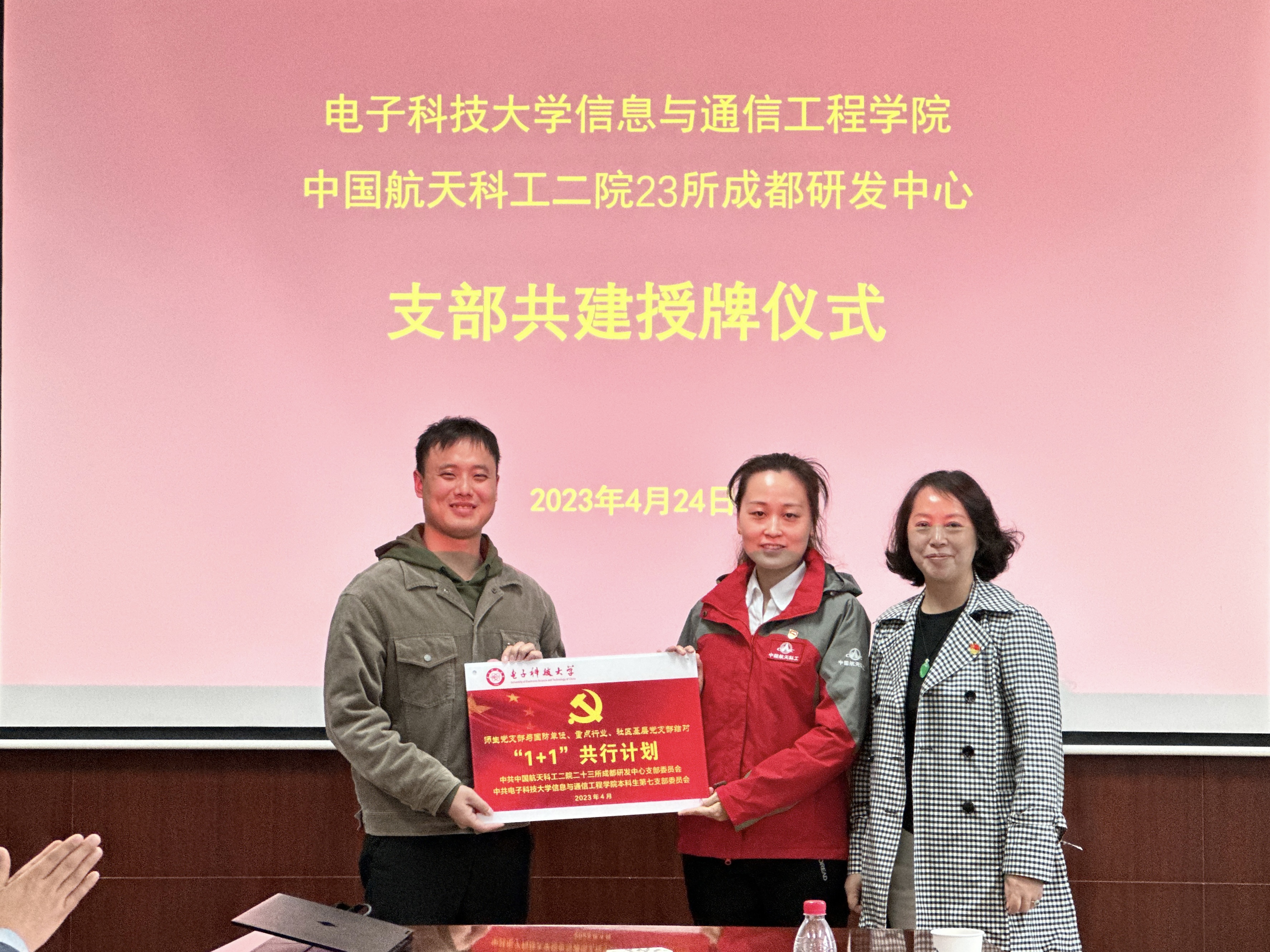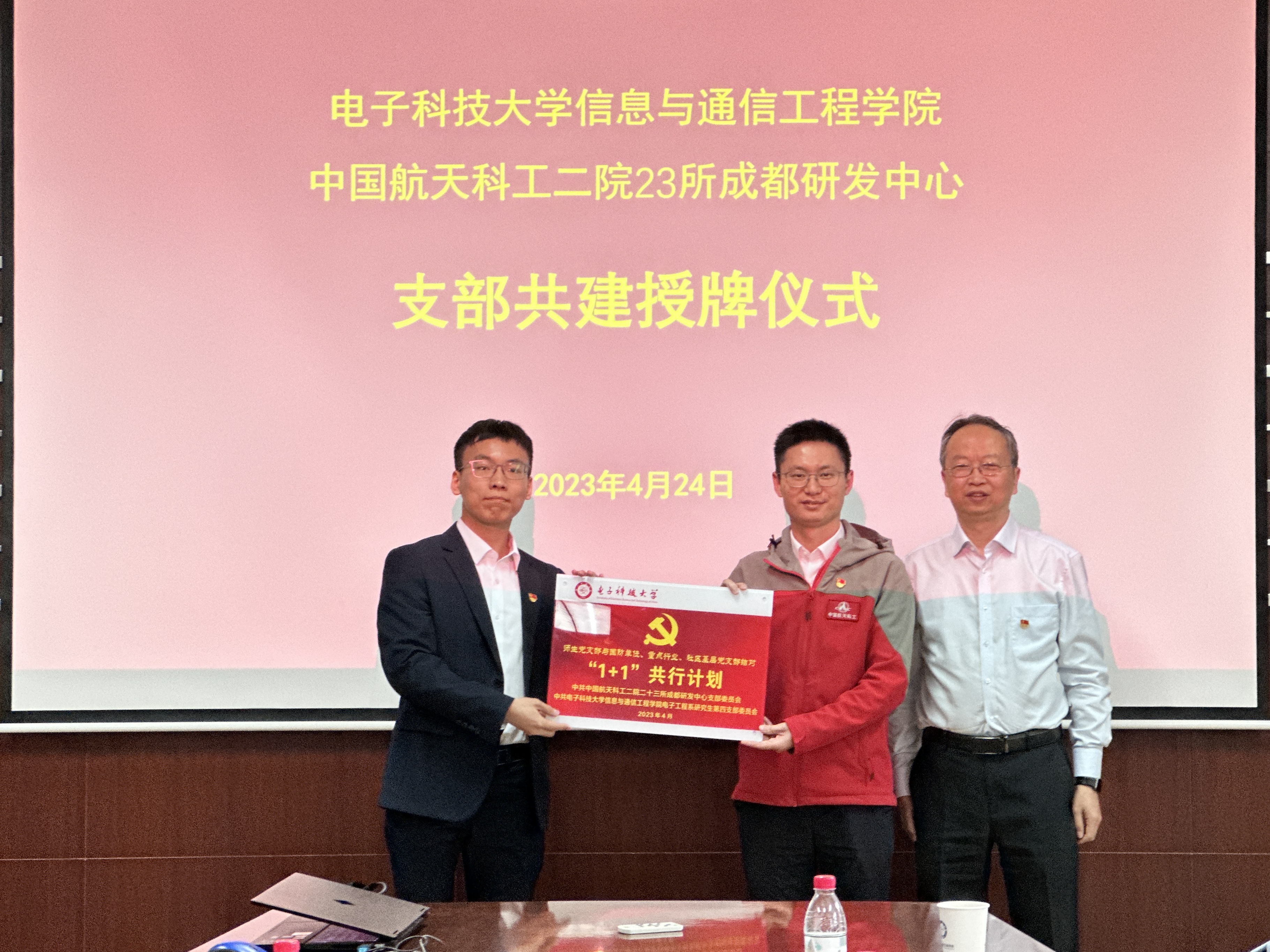支部共建挂牌仪式上,信通学院党委书记冷甦鹏对信通学院与二院二十三所成都研发中心前期共建成果表示肯定。他指出,希望未来双方加强党建与科研深度融合,提升校企党建协同育人质量,构筑支部共建最大同心圆。二院成都分院党委书记、常务副院长张斯伟表示,希望双方通过支部共建纽带,充分发挥各自优势,以党建引领人才培养、科学研究等业务工作高质量发展。