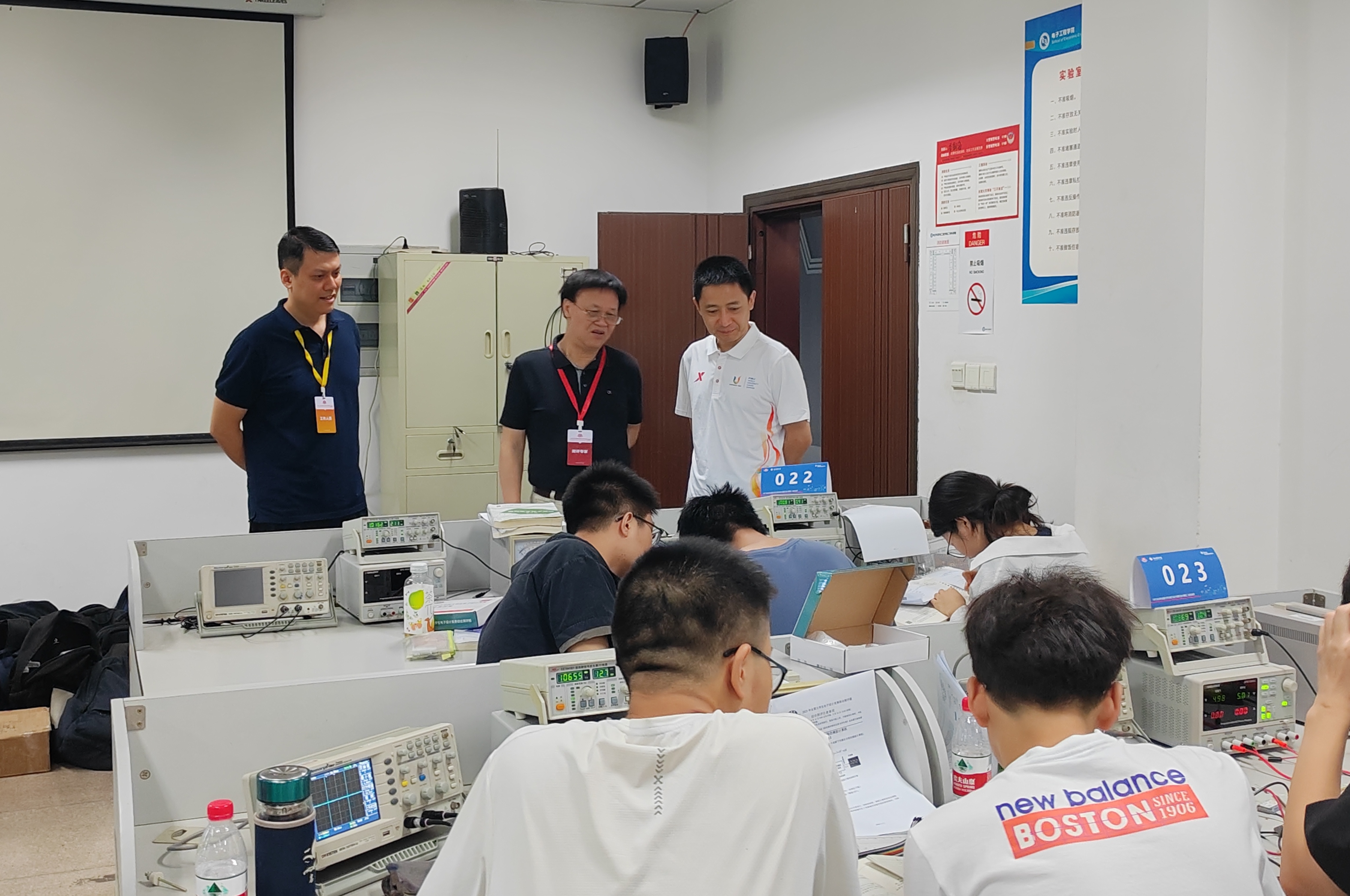 8月14日,由四川省教育厅主办,四川赛区组委会、学院和学校教务处共同承办的TI杯2023年大学生电子设计竞赛(四川赛区)测评工作在我校圆满完成。省内外50所高校、3000余名学生参赛,43位省内各高校专家对最终提交的880余份作品进行评审,最终共有99支优秀队伍进入综合测评环节,同场竞技。全国大学生电子设计竞赛组委会责任专家、国家级教学名师曾孝平教授代表全国组委会进行巡视,四川赛区组委会副主任、学校副校长孔令讲教授到现场看望测评专家和参赛学生、视察比赛情况。