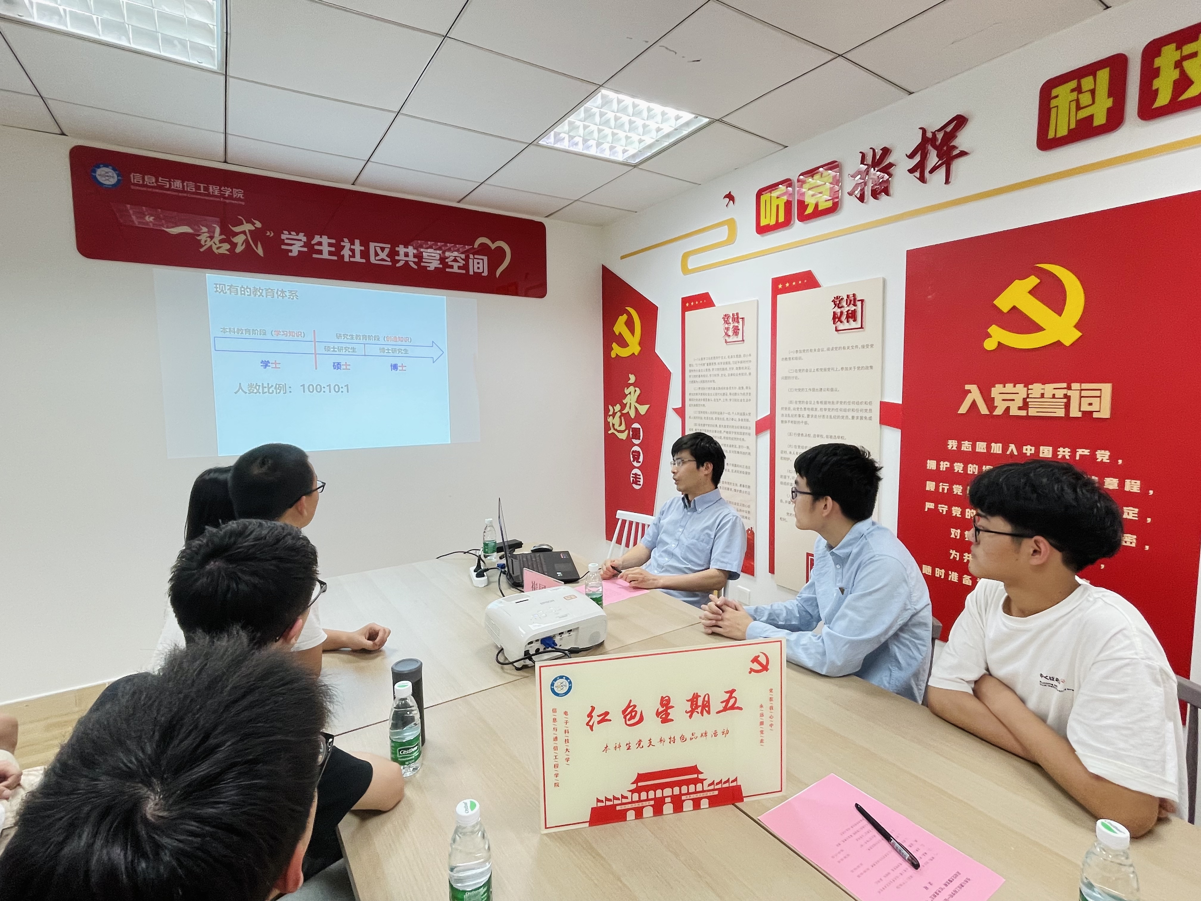依托本科生党支部特色品牌活动“红色星期五”,充分发挥党组织在学生社区的战斗堡垒作用。以党建工作为引领,做到活动“常态化、创新化、品牌化”,打通学生党支部建设的“最后一公里”。该品牌入驻社区以来,先后邀请校院党政领导、思政课教师、专业导师、企业高管和优秀学生党员,通过理论政策宣讲、热点话题分享、学科文化浸润、朋辈答疑帮扶等形式,强化大学生思想政治教育,铸牢信仰根基。