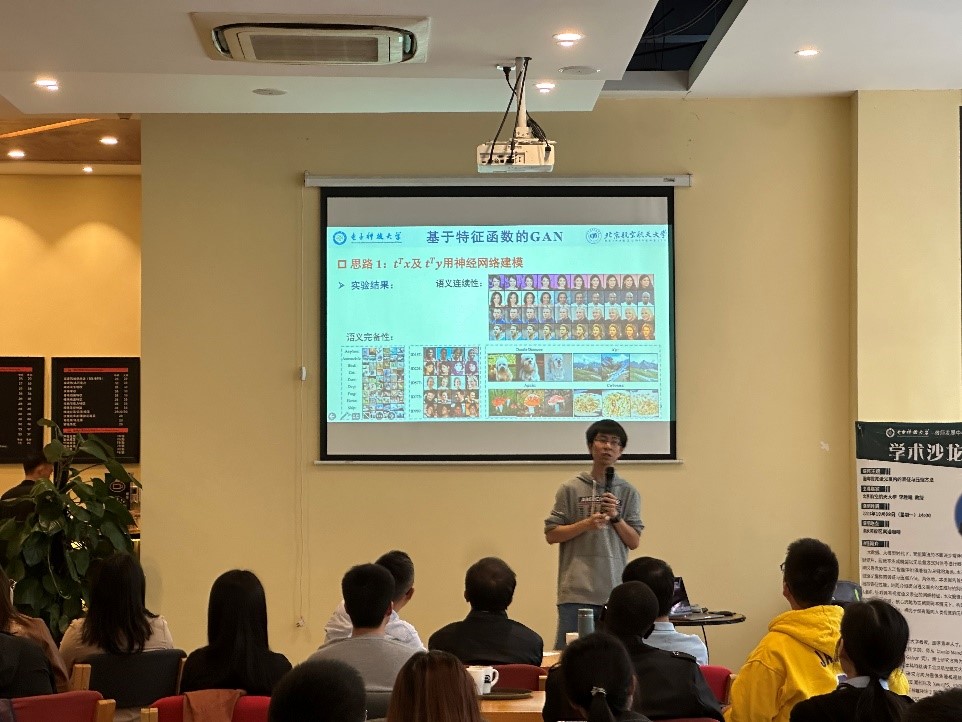 李胜曦教授首先从主成分分析、自动压缩机、变分自动压缩机等角度介绍了信号表征与重构的涵义。然后介绍了对抗生成网络(GAN)在语义重构场景中的应用及现有IPM-GAN的缺陷。IPM-GAN的缺陷在于隐变量空间的矩匹配并不完备,即使两个分布的各阶矩都一样也无法说明两个分布相等。基于此李教授认为可以使用分布匹配代替矩匹配,引入特征函数衡量两个分布的距离,实验结果表明,该方法能得到语义更加完备的隐变量空间。