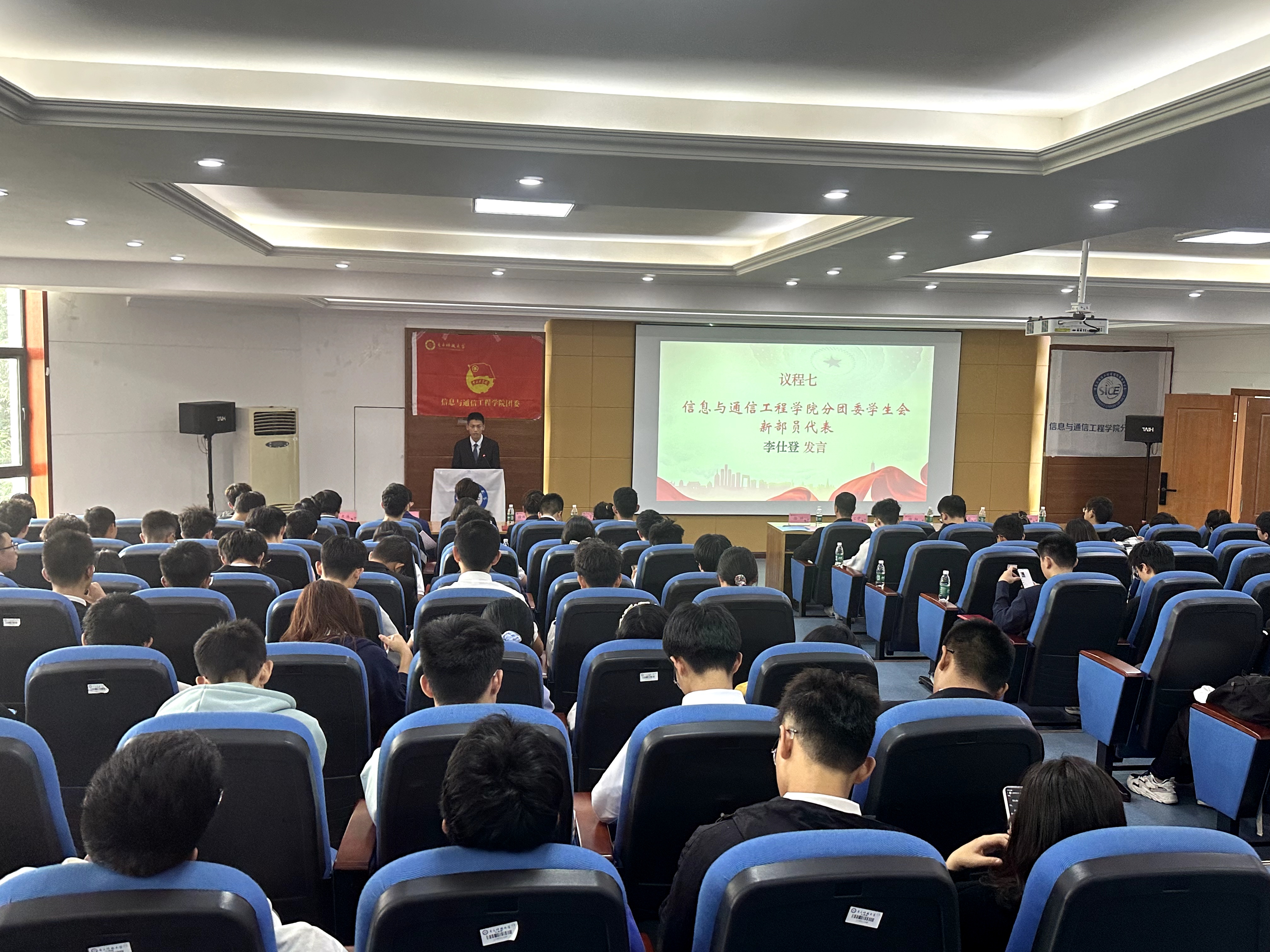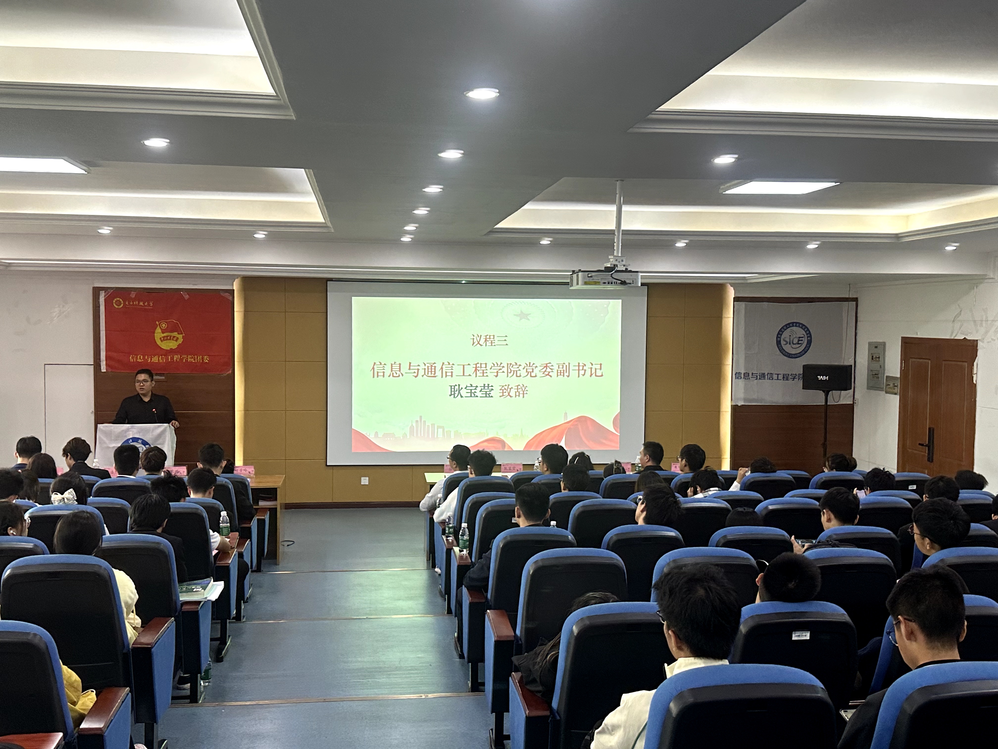耿宝莹代表学院党委致辞,首先高度肯定了学生会过去一年的工作成绩,衷心感谢全体成员的努力付出,向新一届学生会的成立表示祝贺!他对选择加入信通院会的新成员们表示热烈欢迎,勉励大家要珍惜在学生会组织成长锻炼的机会和平台,增强责任意识、勇于面对挑战、积极履职尽责,在服务同学的过程中实现自我成长。耿宝莹强调,学院新一届学生会要继续发扬团结奋进的精神、务实担当的作风,坚持全心全意为同学服务的宗旨,持续深化改革,加强组织建设,提升工作实效,时刻葆有争做标杆的态度和当好示范的决心,努力为学科建设和学院发展贡献青春力量。