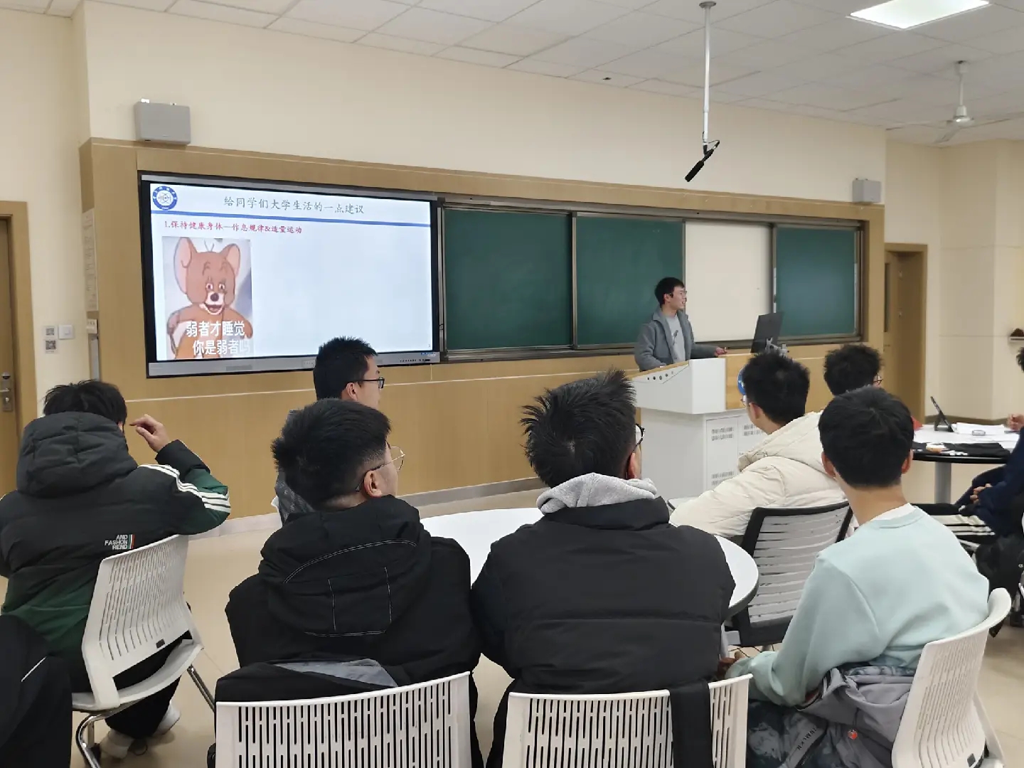 活动伊始,王老师对班级同学们进行了大学生活全方位的建议与指导,首先,王老师强调了体育锻炼的重要性,作为电子信息领域的人才,应当具有强健的体魄与过硬的身体素质,才能在高强度的科研工作中发挥自己的能力,他希望同学们在紧抓学习的同时,也能注重自己的身体健康。
