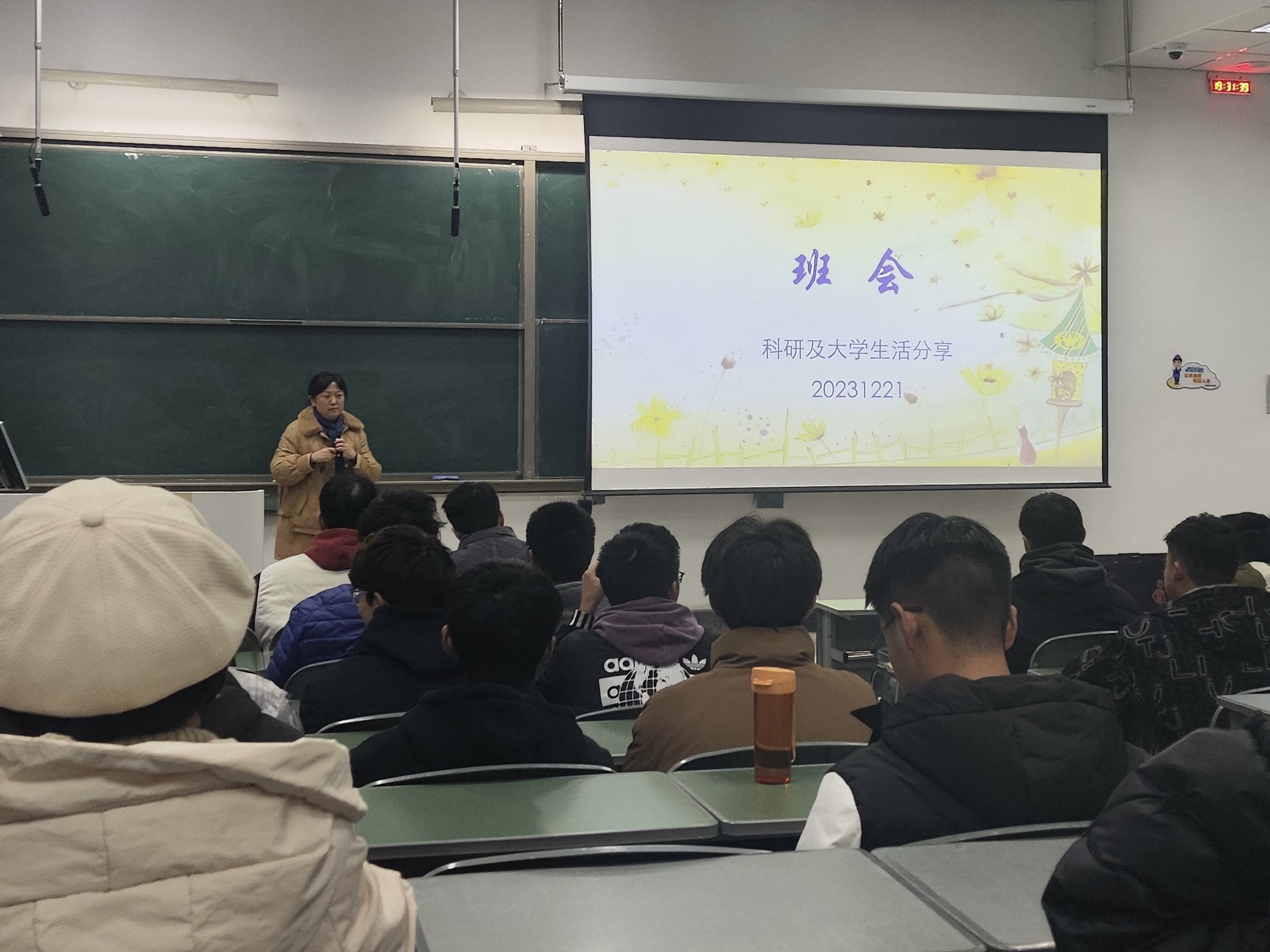 首先,陶老师进行了开场致辞,希望通过此次分享会能让同学们找到自己的目标,分配好自己的时间,勇于尝试科研,积极参与活动,充实自己的大学生活。