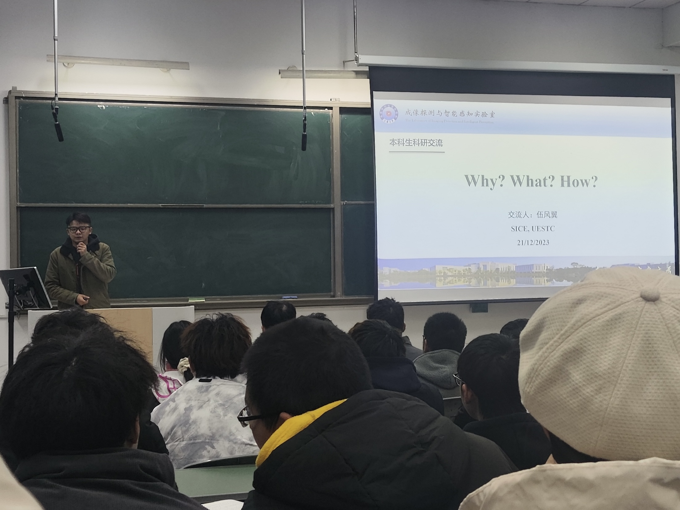 此次分享会还特意邀请到了两位优秀的学长进行交流分享。伍风翼学长从自己的科研经历出发,给同学们分享了自己探索未知的科研初心,并从如何打好知识基础、如何获取资源信息、如何找到合适的导师团队、如何做好科研规划、如何做好心态调整这几个方面展开了详细的讲述,让同学们对科研有了更深入的了解。伍风翼学长强调,热爱是让他能够坚持的不竭动力,并鼓励大家积极寻找自己的科研方向。
