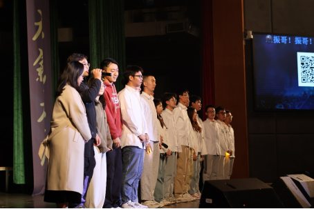 晚会的惊喜节目,由信通学院和电子学院2023级辅导员、导生上台为同学们送上美好祝福,一起展望未来。他们为同学们带来精心准备的合唱节目《那些你很冒险的梦》,悠扬的旋律,励志的歌词,激励大家一起奋勇前行。