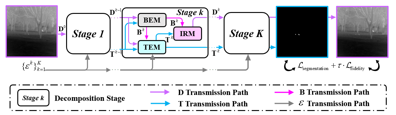 论文阐述了RPCANet的工作原理,通过可视化每个网络层的输出,展示了如何逐层分离低秩背景和稀疏目标。这一过程展现了网络如何分阶段精确地逼近和提取目标,确保了方法的高度可解释性。