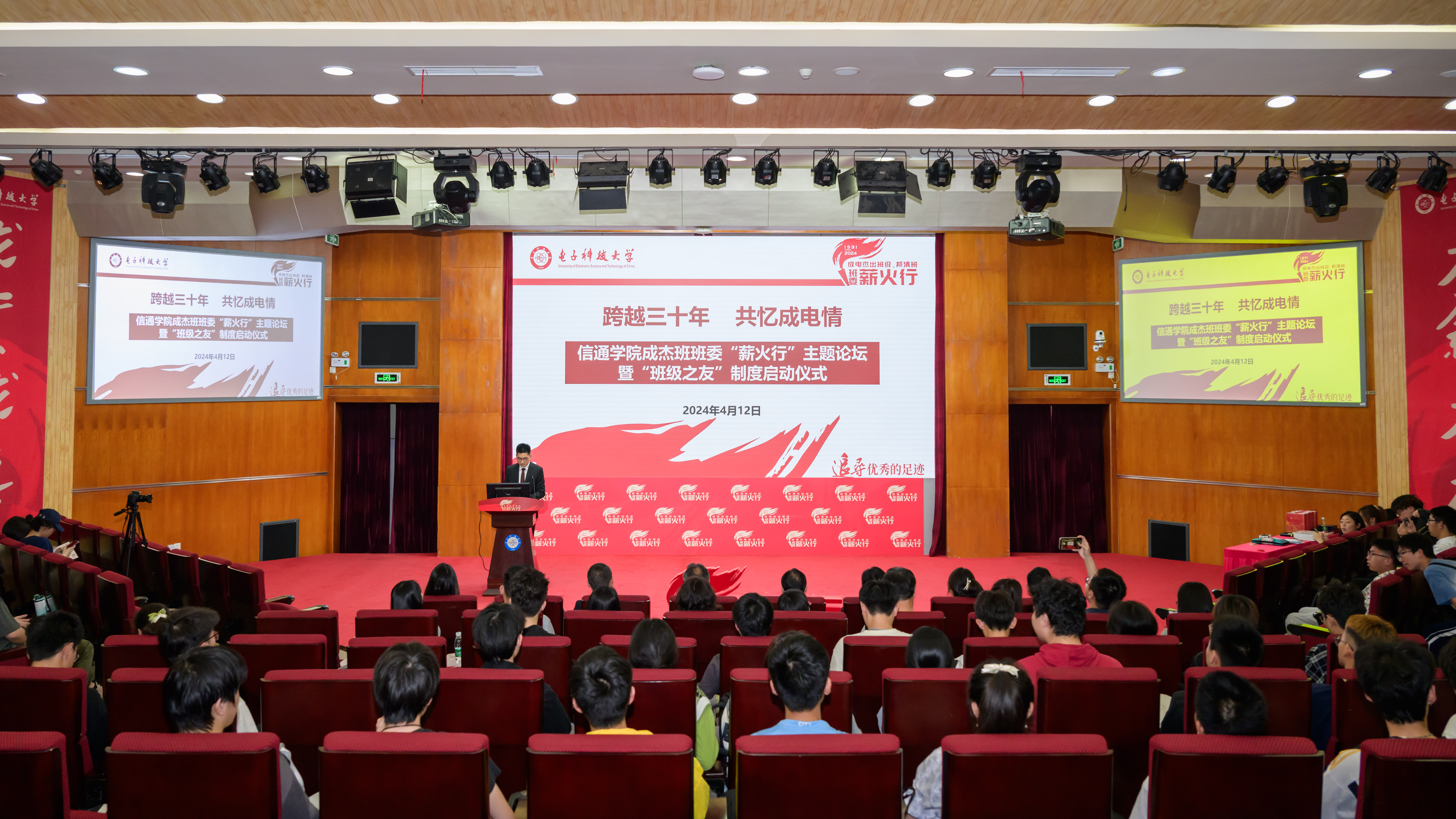4月12日,信通学院举行成电杰出班级班委“薪火行”主题论坛暨“班级之友”院友联系班级制度启动仪式,邀请1994级、2004级、2014级5位院友现场进行主题分享。校党委学工部部长钱云光、合作发展部部长田广和、信通学院党委书记冷甦鹏等校、院领导出席活动。