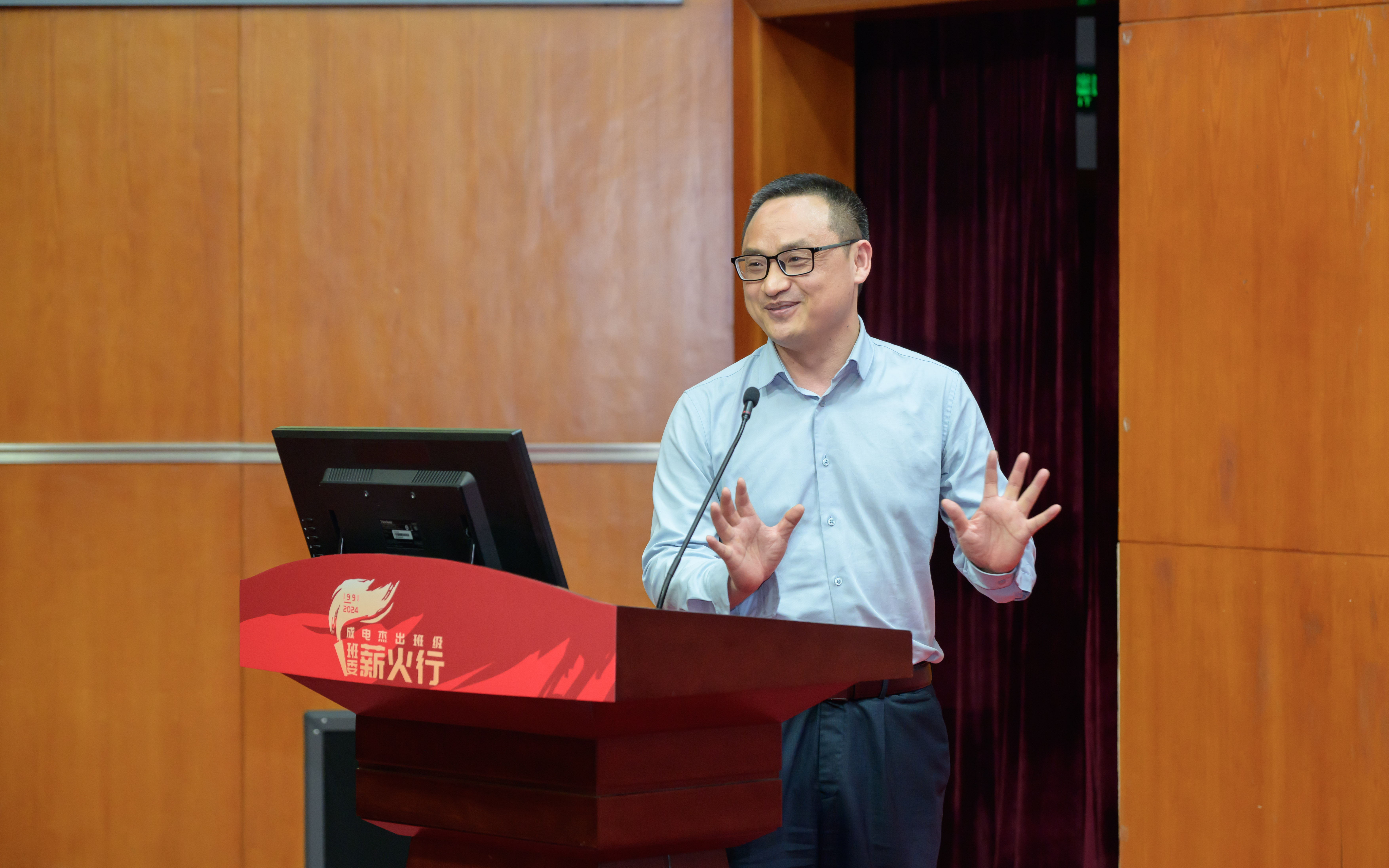 94级2班班副班长游世林从“大学生活记忆深刻两三事”讲起,并肩军训的难忘回忆、全班积极提交入党申请书的上进氛围、图书馆和教室争先占座的浓厚学风……他说,大学养成的学习习惯和与班级共同成长的成电时光是他人生中的宝贵财富。从在南京14所参与神舟一号雷达跟踪系统的设计,到加入中兴通讯,成为5G、6G安全标准牵头人,他表示,母校带给自己一生受用的品德和知识,激励着他不断攀登,为国家安全事业做出自己的贡献。同时表示期待同学们加入国防产品、未来6G通讯产品等研发工作,解决目前最棘手的卡脖子问题,为民族复兴大业做出新时代的新贡献。