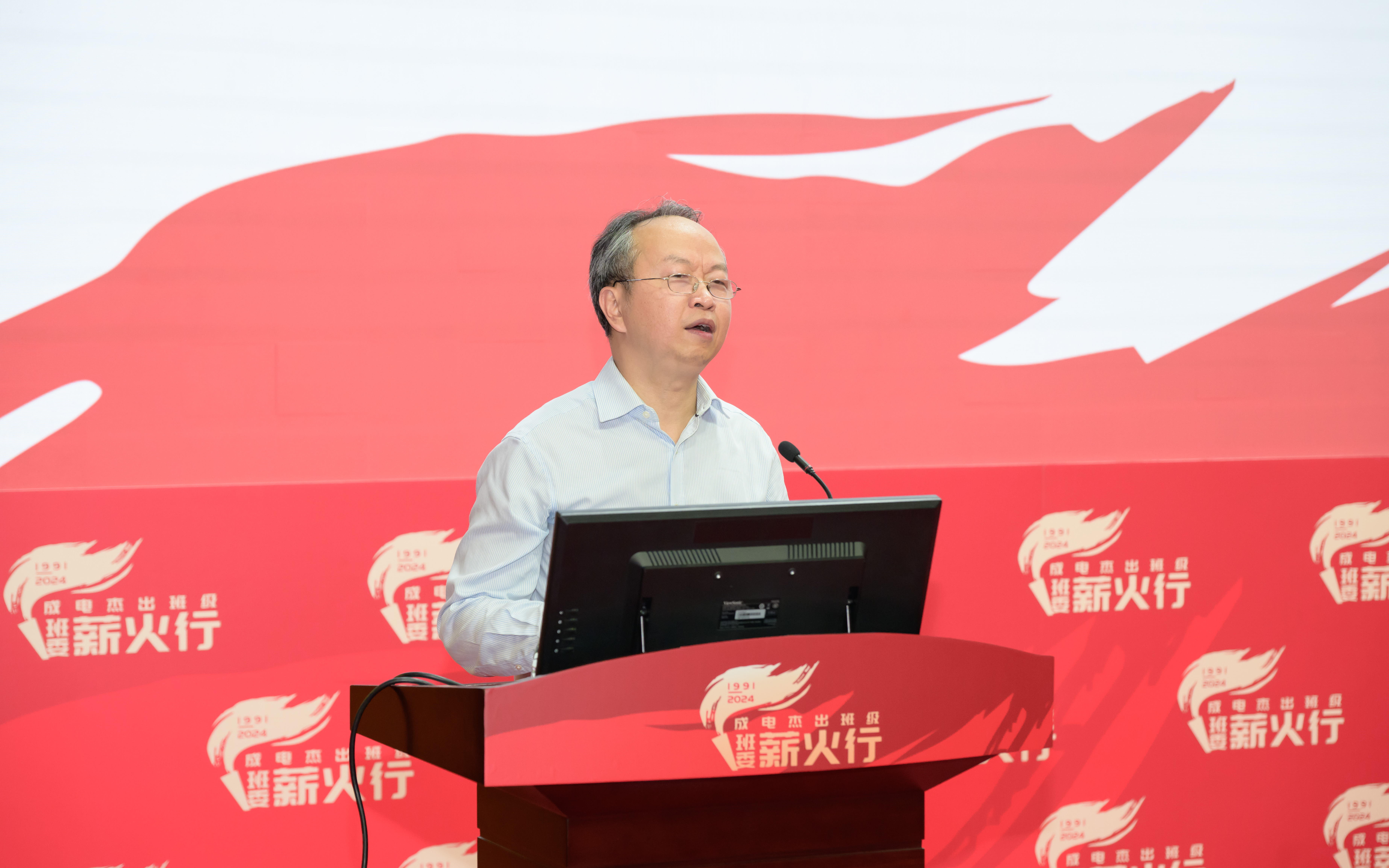 冷甦鹏代表学院向5位“成杰班”班委代表回家表示欢迎。他讲述了“成杰班”的设立初衷和发展历程,以及学院建立院友联系班级制度的初衷。同时给在座的同学们提出两点期望:一是要学习吸收优秀班集体的创建经验,传承和发扬好成电班集体建设的优良传统;二是要积极汲取成长的智慧和力量,科学规划个人发展的目标与路径。他指出,希望同学们传承“听党指挥 科技报国”的价值追求和文化根脉,在班集体的带领下不断进步,对标一流,追求卓越,将成电优班创建精神继续发扬光大。