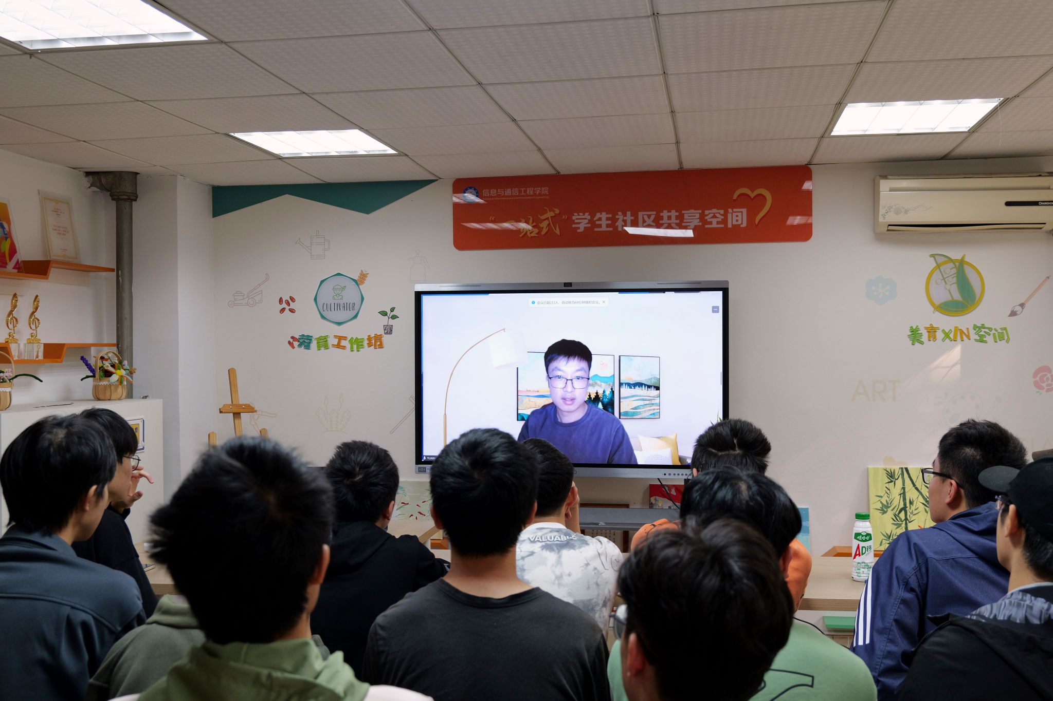 4月12日,信通学院“SICEer毕业发展轨迹系列活动”之“优秀院友进班级”第三期在一站式社区“家”门口的青年学堂举行。学院本科2013级院友、成电杰出学生、Google工程师袁鹏宇以“大学学习与规划”为主题,面向本科2022010907班作分享交流。