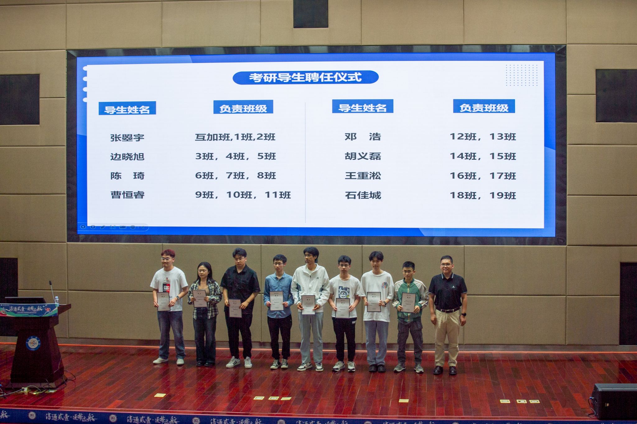 大会伊始,原创微视频《不拼一定后悔》点燃了现场同学们对未来的渴望与激情。随后,耿宝莹副书记为考研导生颁发聘书,期待21级信通学生以他们为榜样,不畏艰难,勇攀高峰,努力传承“听党指挥,科技报国”的学科文化精神。