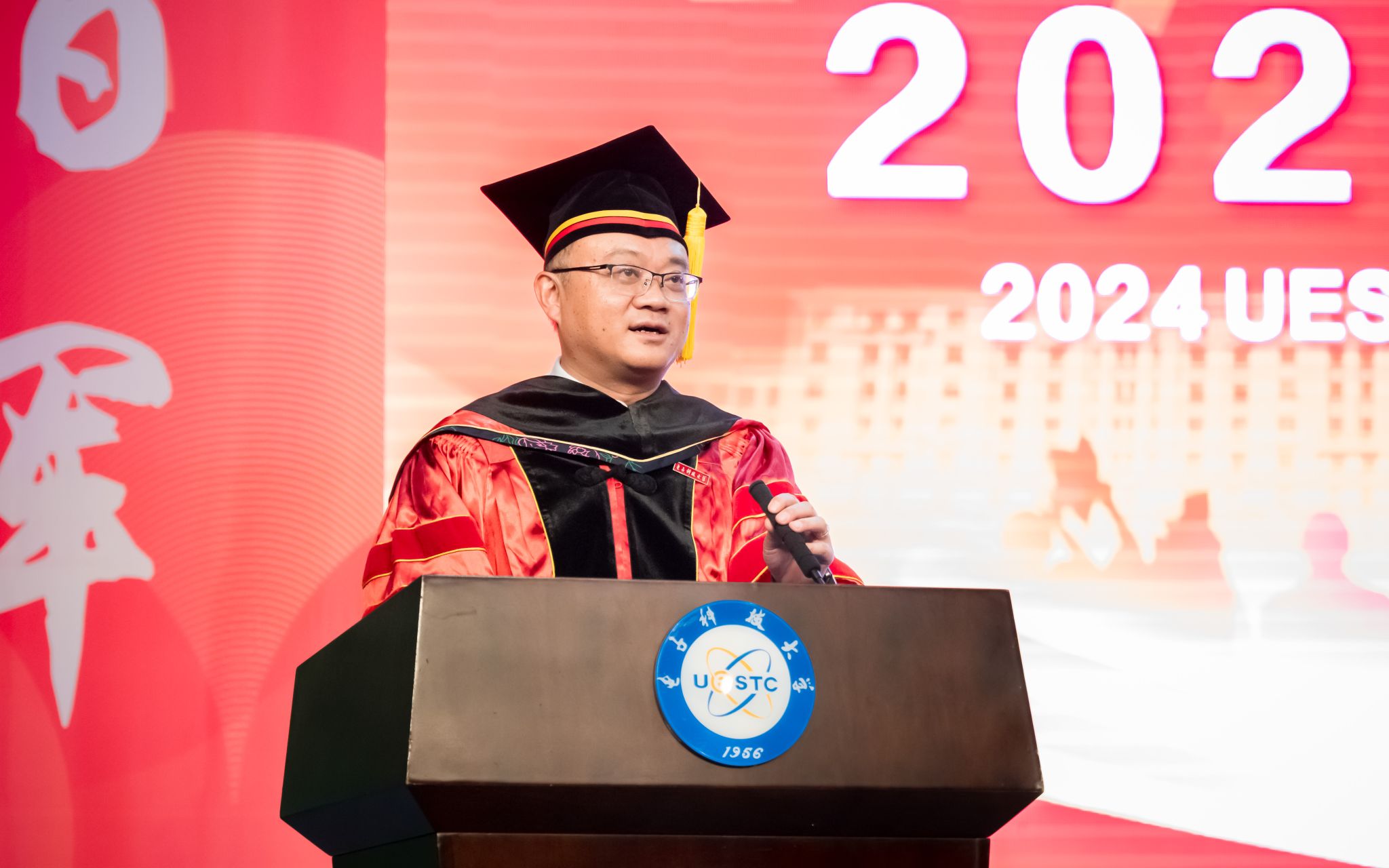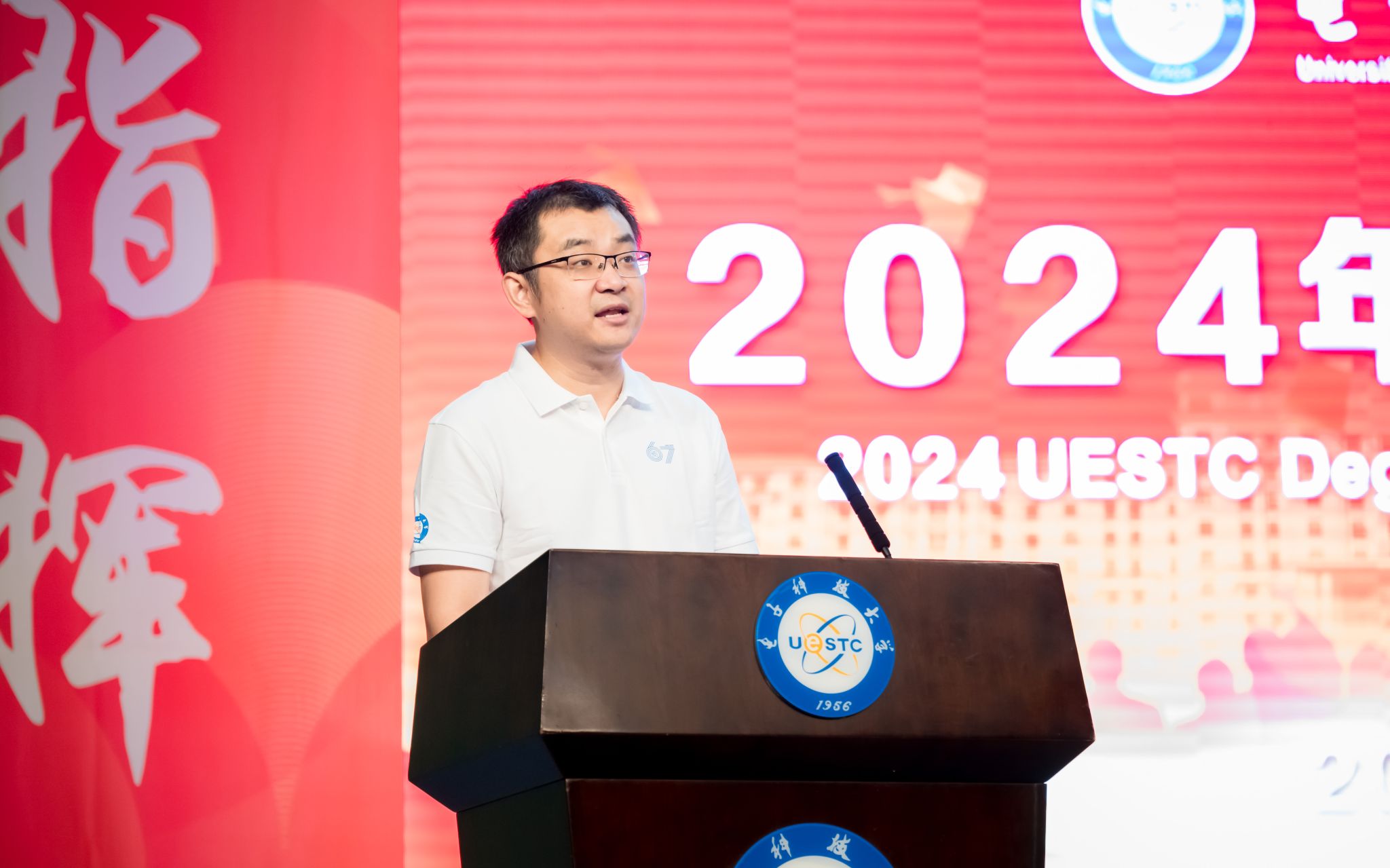 刘帅成教授代表全体教师向毕业生们表示祝贺。作为毕业班班主任,他回顾了2024届毕业生们的成长历程,赞扬了同学们在学术和生活各方面取得的显著进步,鼓励同学们继续深耕专业,拓宽视野,以应对社会快速发展。他说,“士不可以不弘毅”,希望同学们积极作为,用自己的才华和热情为社会贡献力量。