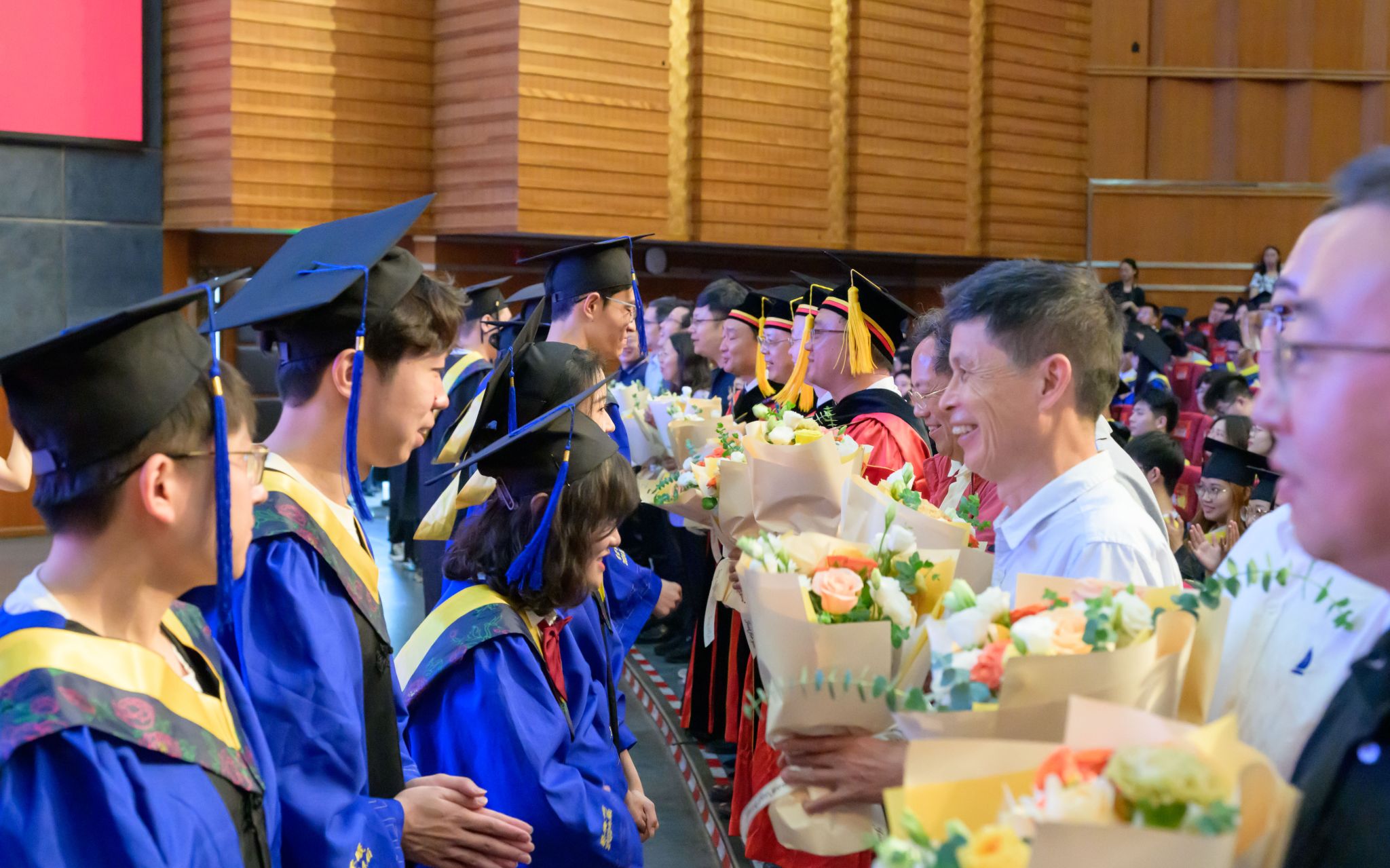 毕业生代表为在场老师们献上鲜花,感谢他们的辛勤付出和无私奉献。