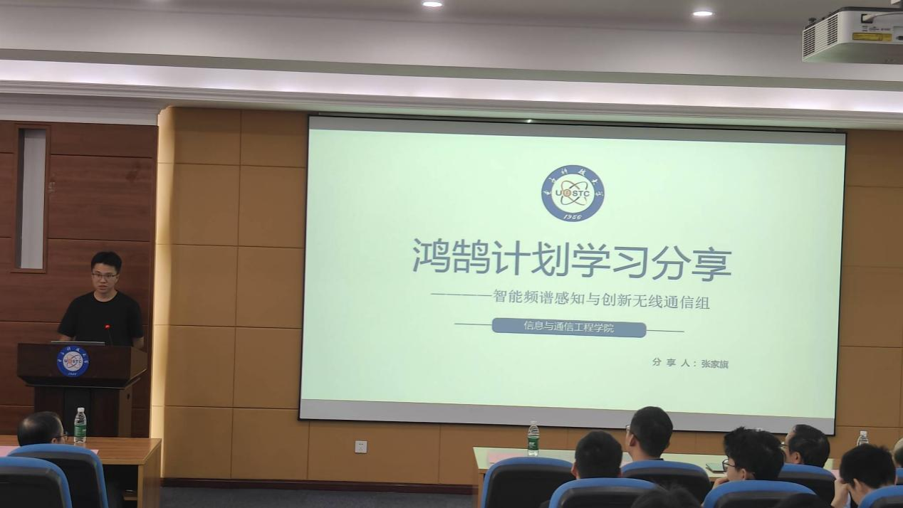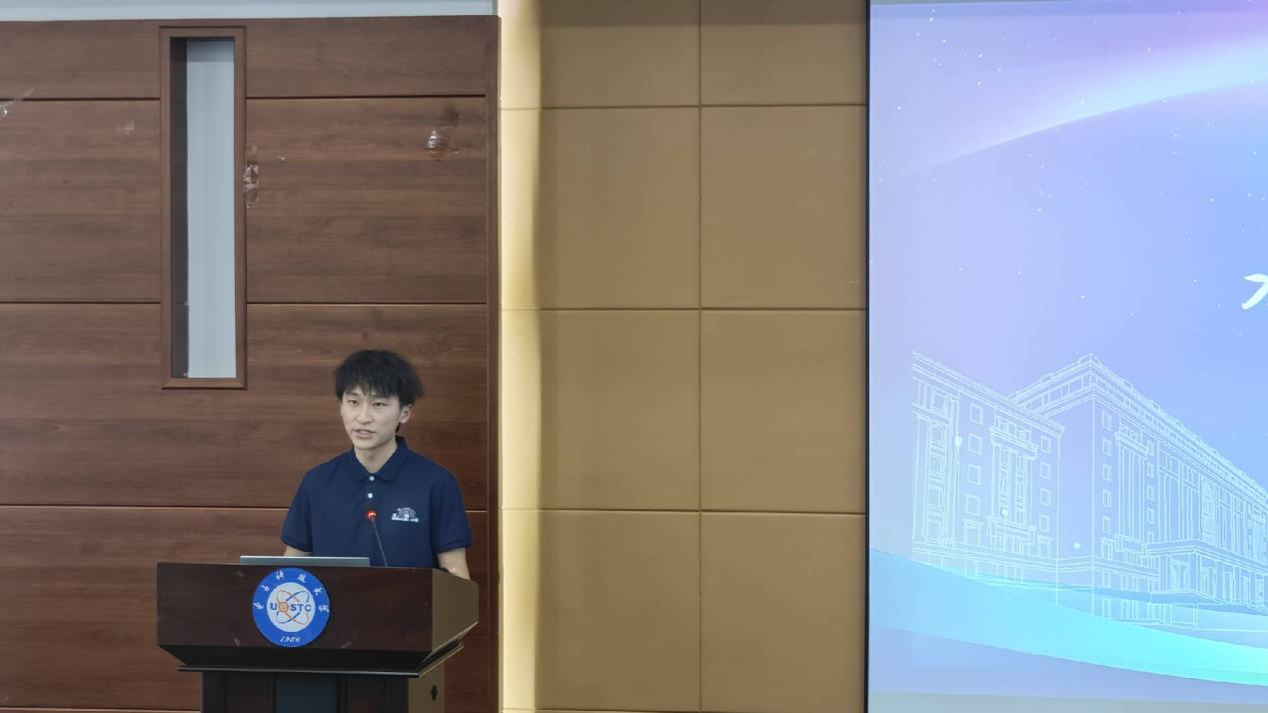 随后,张家旗同学作为优秀结业学生代表进行了分享。张家旗回顾了自己在鸿鹄计划的学习经历,强调了将新知识转化为直觉的重要性,并分享了通过实践加深理论理解的体验。他鼓励在座的新生,期待同学们能在科研育人计划中成为自己期待的样子。