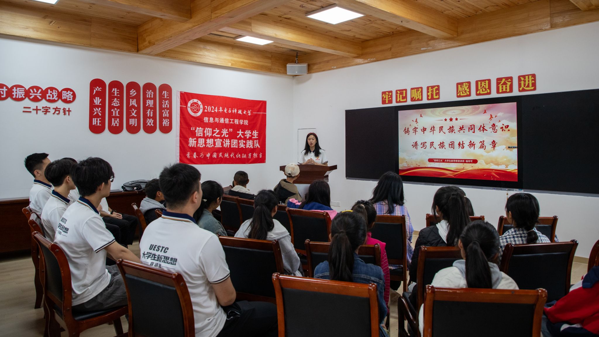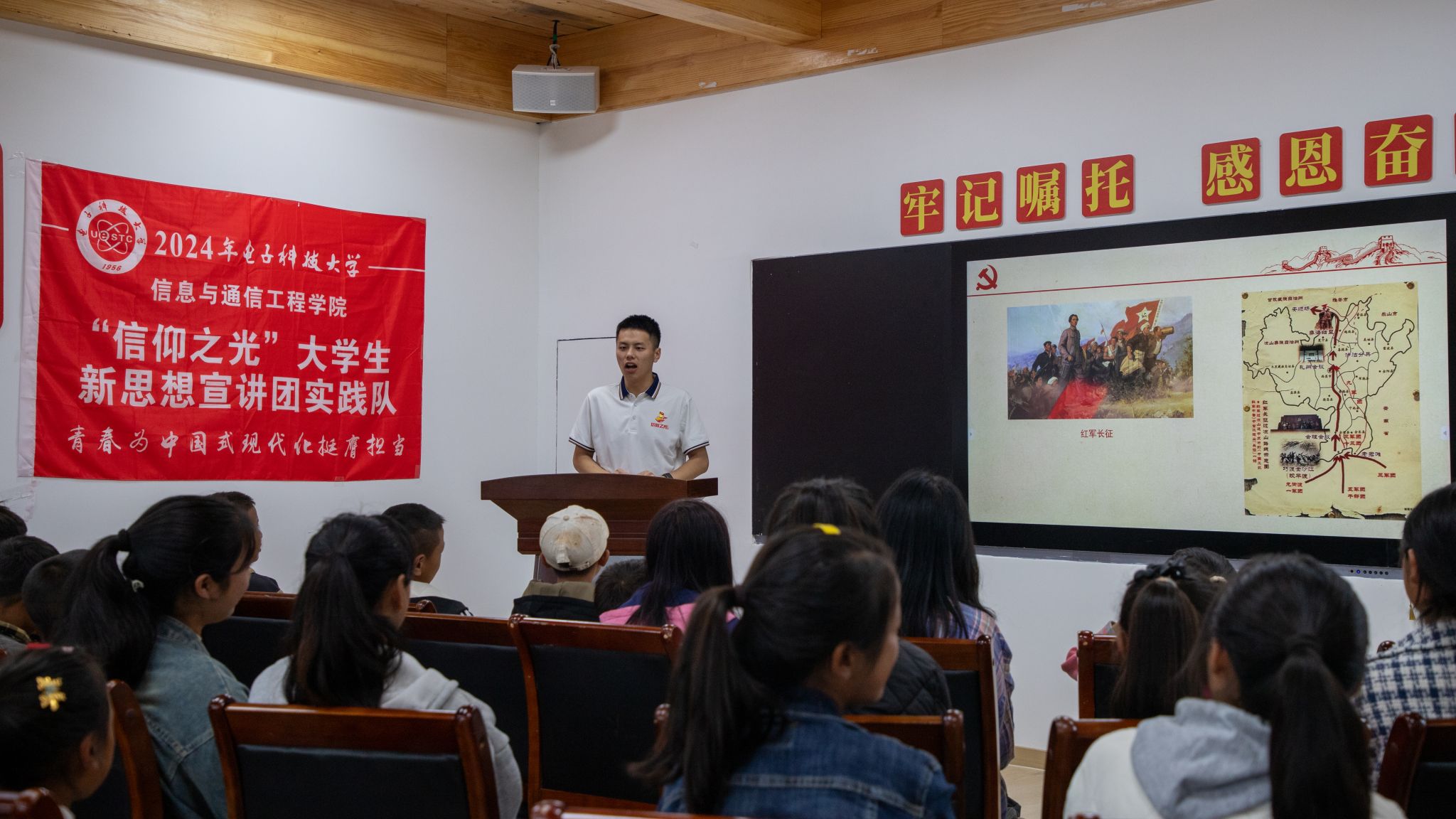7月10日,信通学院“信仰之光”大学生新思想宣讲团在凉山州昭觉县三河村,与西南财经大学实践队携手,面向三河村中小学生开展“讲好中国故事,争做有为少年”的主题宣讲活动。宣讲团10名成员参加活动,他们均是信通学院本科生第七党支部成员。