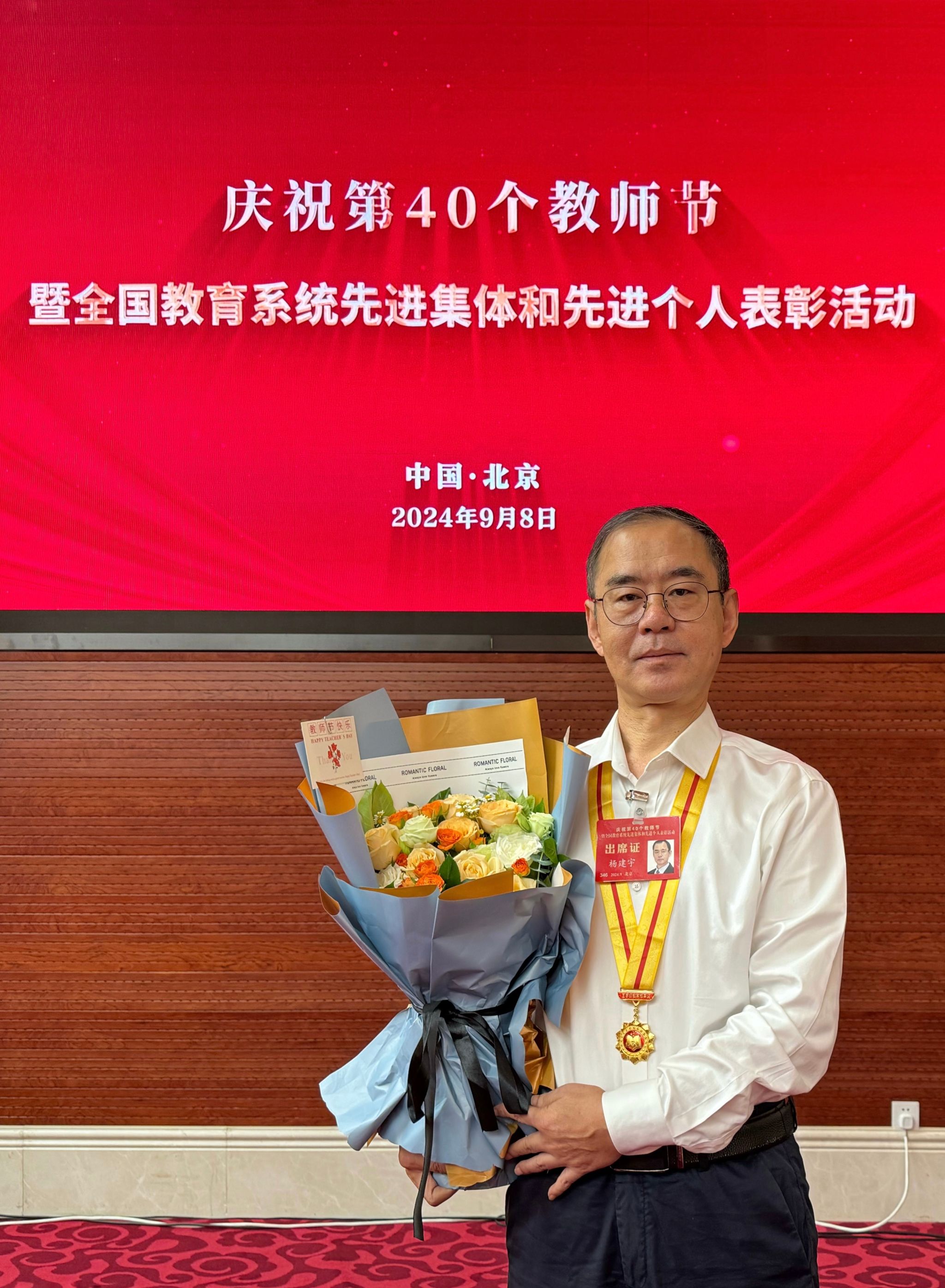 杨建宇教授在庆祝第四十个教师节暨全国教育系统先进集体和先进个人表彰活动现场