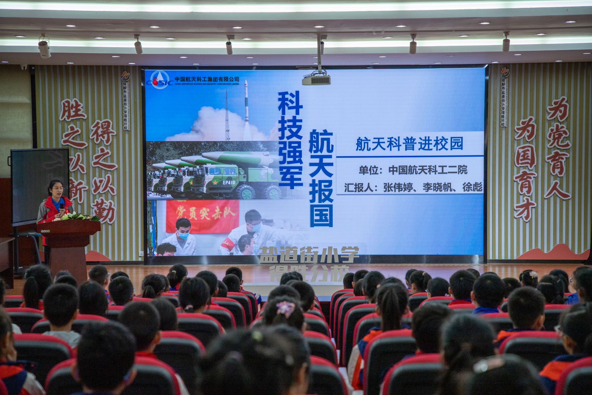 今年是中国第一颗原子弹爆炸成功60周年,为了传承弘扬航天精神,10月24日,“信仰之光”大学生新思想宣讲团联合中国航天科工二院二十三所航天精神科普宣讲团,走进成都市盐道街小学得胜分校,以“科技强国梦 少年当自强”为主题,围绕成电建校史、航天精神等,为200余名学生带来微党课宣讲。