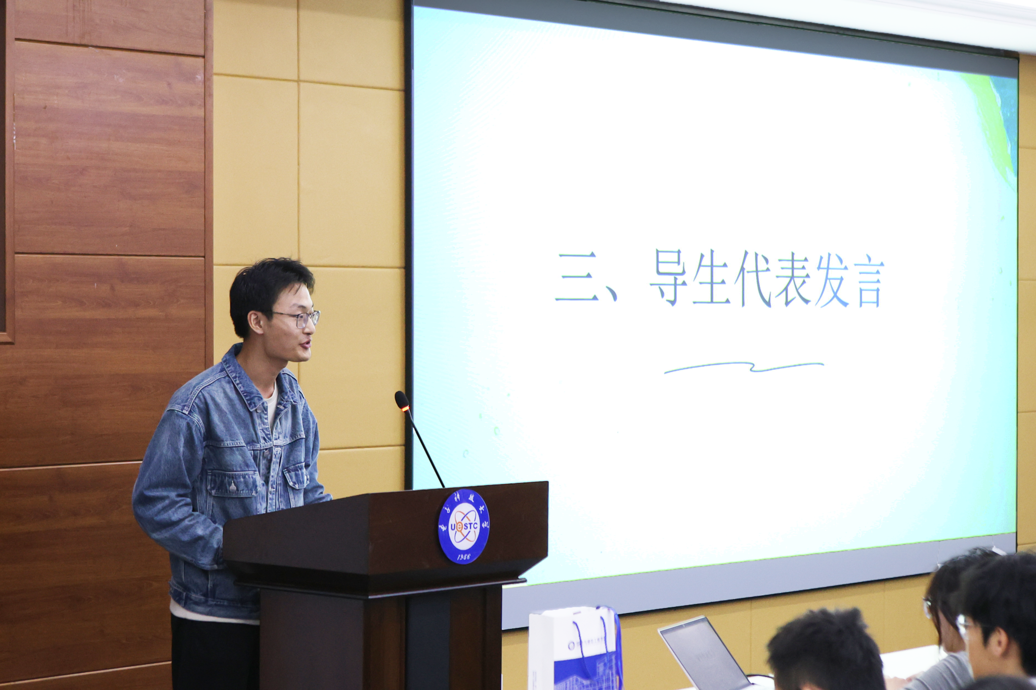 首先,2023级辅导员段志秀、李烁发言。段志秀老师回顾了年级工作,细数16位导生陪伴大家走过的大一时光,从迎新准备到入校教育,从专业学习到生活适应,从“学文化”营造到“家文化”建设等等。她向导生们的辛勤付出表示衷心感谢,并祝福他们在未来的学习和生活中不断进步,越来越好!李烁老师表示“有一群负责又给力的导生,真的让人放心更暖心”,过去一年自己与导生和23级同学们共同成长,他希望各班班委能接好导生的接力棒,齐心协力做好班级建设和各项工作。