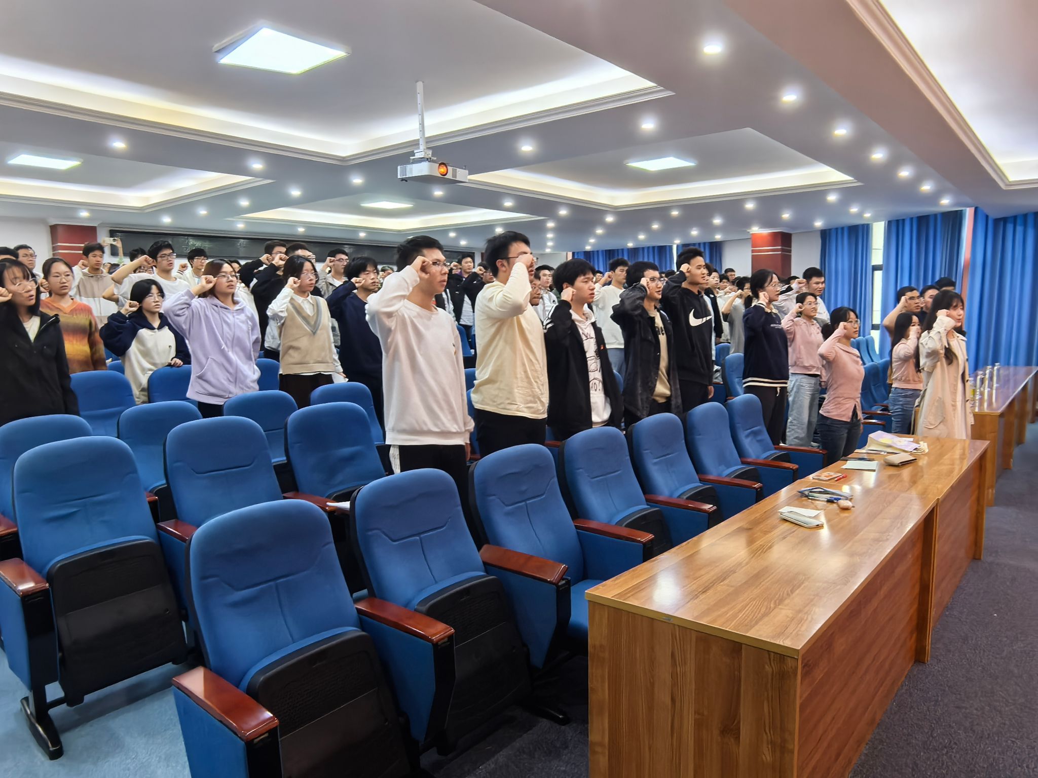 学院团委书记罗荣老师对活动进行总结。他勉励团员青年们自觉加强理论学习,主动了解时政热点,他鼓励新生团支部通过联学分享的形式持续学习党的二十届三中全会精神,希望大家响应听党指挥号召,立下科技报国志向,为新时代国家科技发展贡献出属于信通学子的积极力量。最后,在学院青凝社成员、本科2024级团支书代表的带领下,与会人员重温入团誓词,团日活动圆满结束。