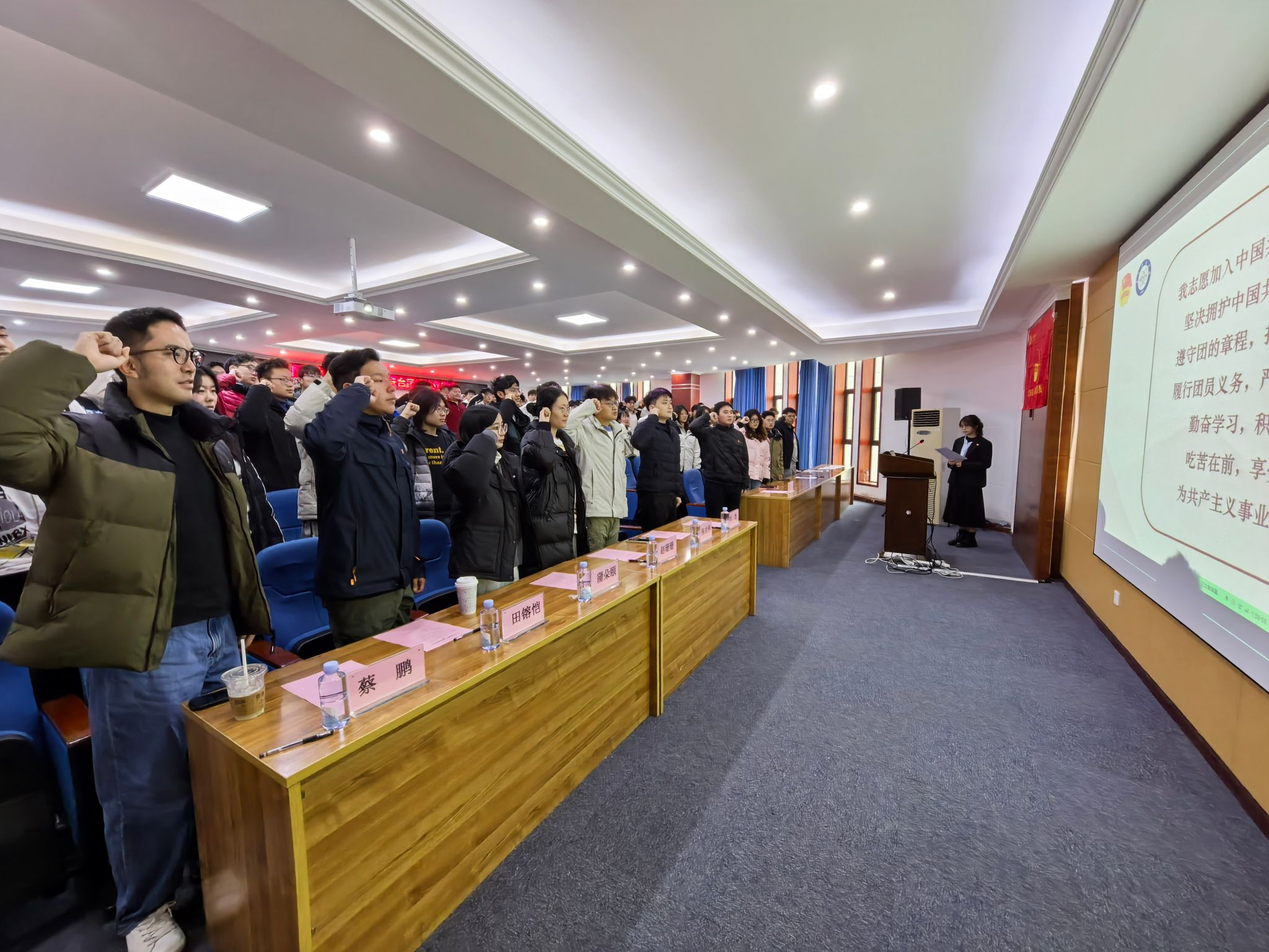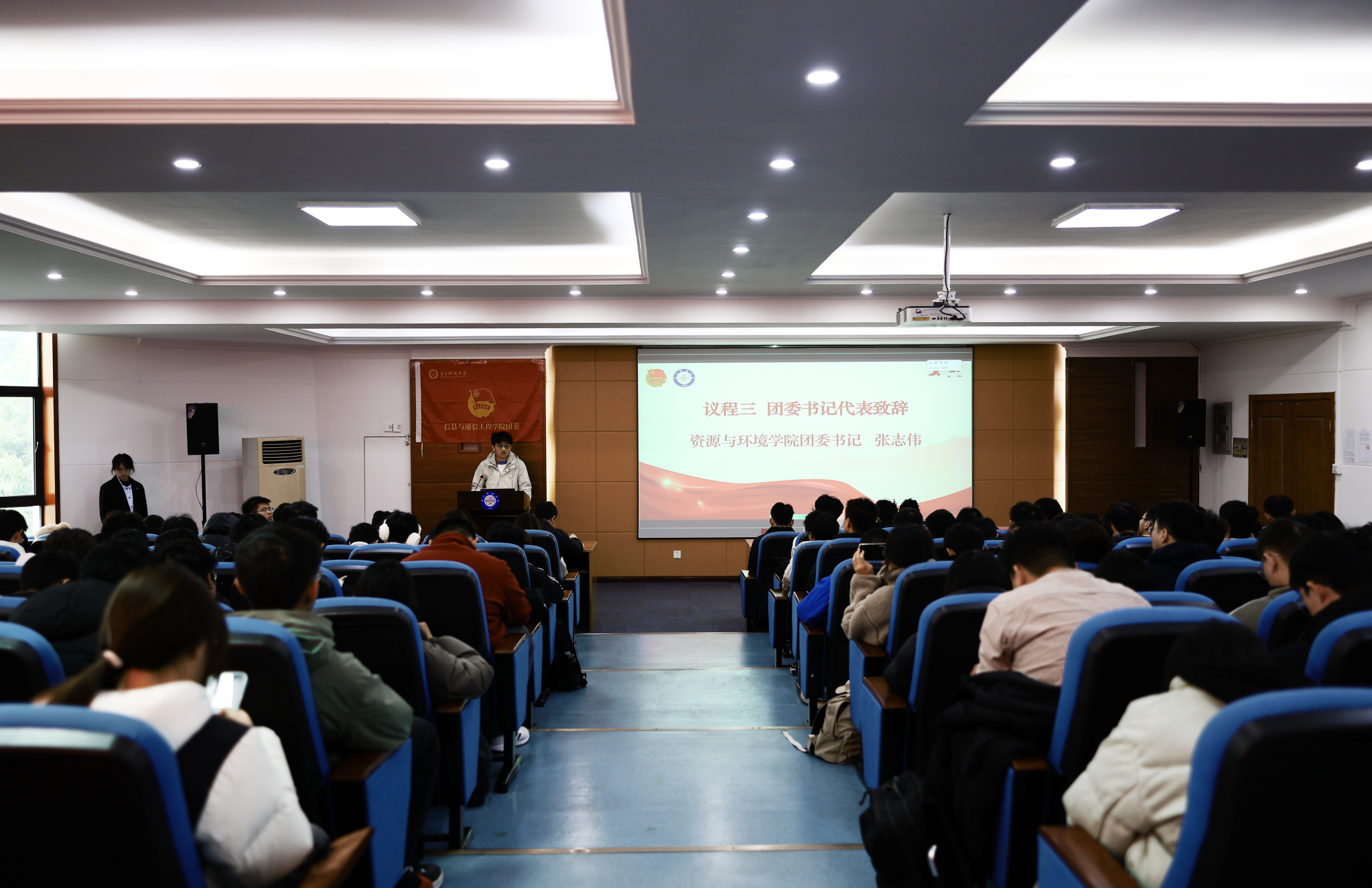 随后,资环学院团委书记张志伟老师致辞。他谈到“青年兴则国家兴,青年强则国家强。作为新时代的青年团员,我们既生逢其时,又重任在肩。共青团作为党的助手和后备军,始终与党同心、跟党奋斗。”他勉励大家要坚定不移听党话、跟党走,把个人的理想追求融入党和国家事业之中,努力学好专业知识,不断提升综合素质,立志为实现中华民族伟大复兴贡献青春力量。