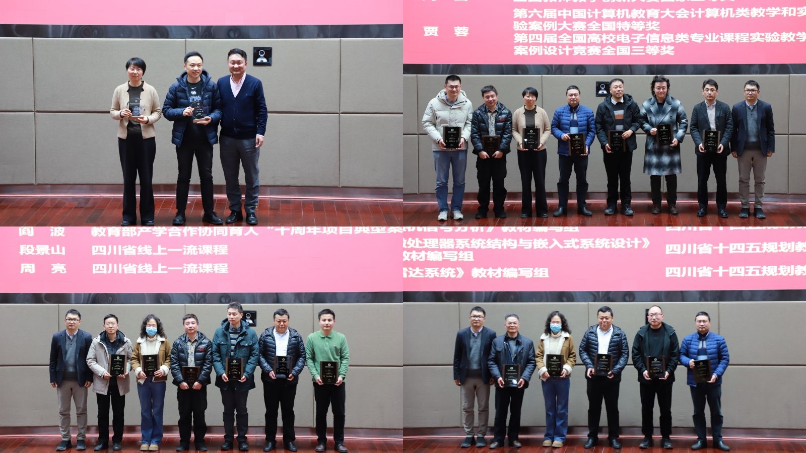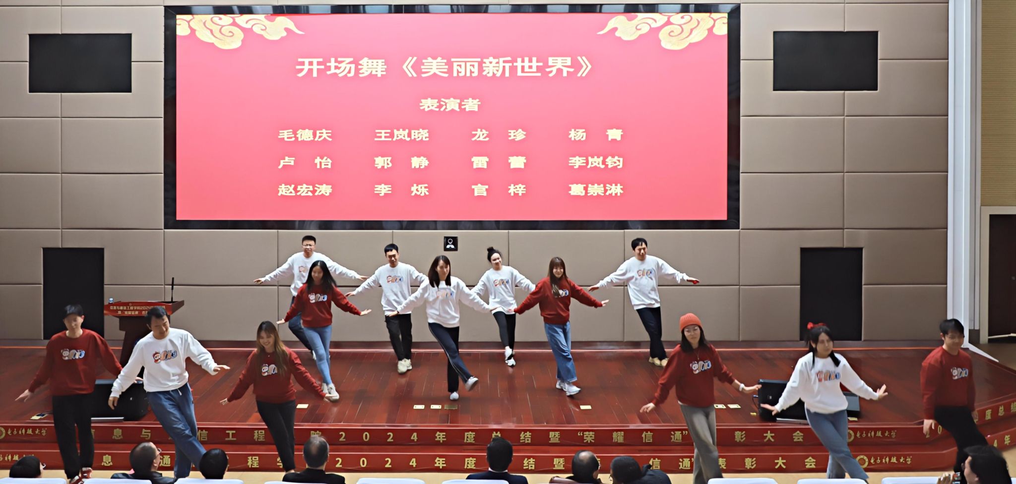 随后,大会进入“荣耀信通”教职工荣誉奖励表彰环节。该部分由网络工程系赵毅哲老师和罗龙老师主持。表彰大会开始前,学院教师带来开场舞《美丽新世界》。