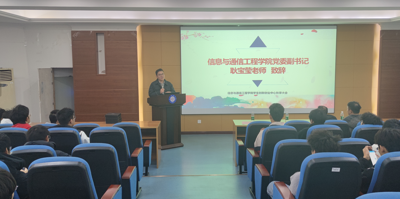 大会伊始,耿宝莹副书记为大会致辞。他首先对创新创业中心的基本情况和发展历程做了详细介绍,指出学院始终致力于为同学们打造优质的科研学习平台,提供全方位的支持。他强调,同学们要深刻领会团结协作的重要性,在竞赛和日常活动中,加强沟通交流,凝聚起强大的团队力量,共同为学院的科创事业添砖加瓦。