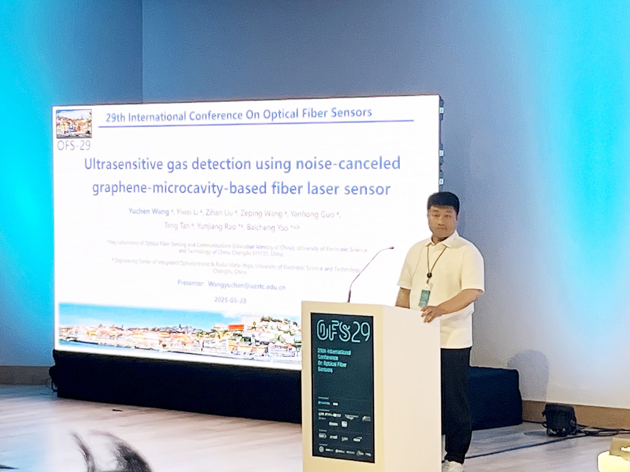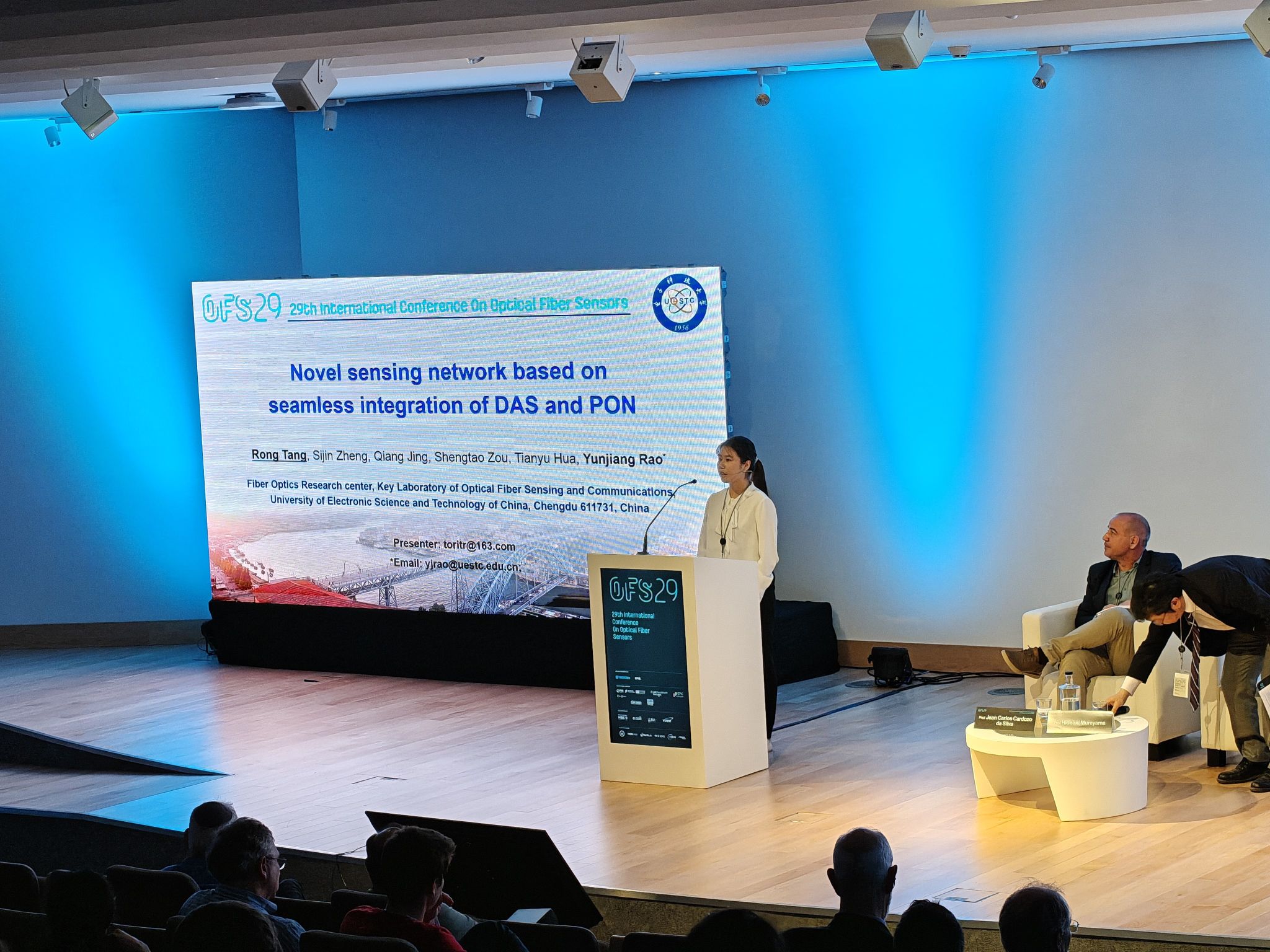 近日,我校光纤传感与通信教育部重点实验室主任饶云江教授带队参加了在葡萄牙历史名城波尔图举办的第29届国际光纤传感大会(OFS29:The 29th International Conference on Optical Fiber Sensors)。本次大会,我校光纤传感团队共18人参会,人员规模名列全球团队第一。团队共有大会特邀报告1个(大会共15个),大会口头报告论文4篇(大会共40篇),大会张贴报告论文15篇,并获最佳学生论文奖1项(大会共4项)。入选论文数继日本OFS28之后再次蝉联全球第一,保持了我校在光纤传感领域的国际领先地位。