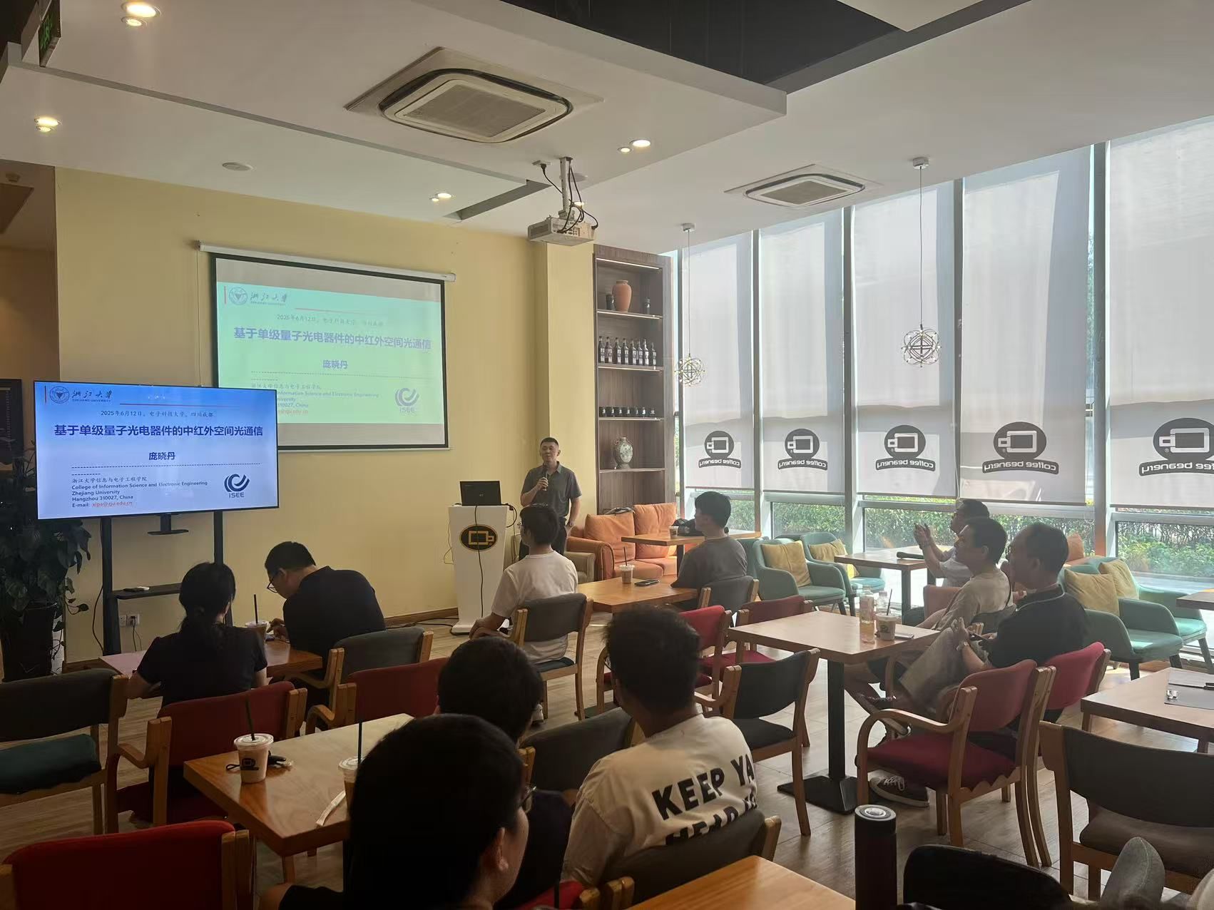 6月12日由教师发展中心主办,william英国中文、通信抗干扰全国重点实验室承办的“学者论坛”讲座在清水河校区宾诺咖啡举行, 浙江大学求是特聘教授庞晓丹教授作题为“基于单级量子光电器件的中红外空间光通信”的学术报告。