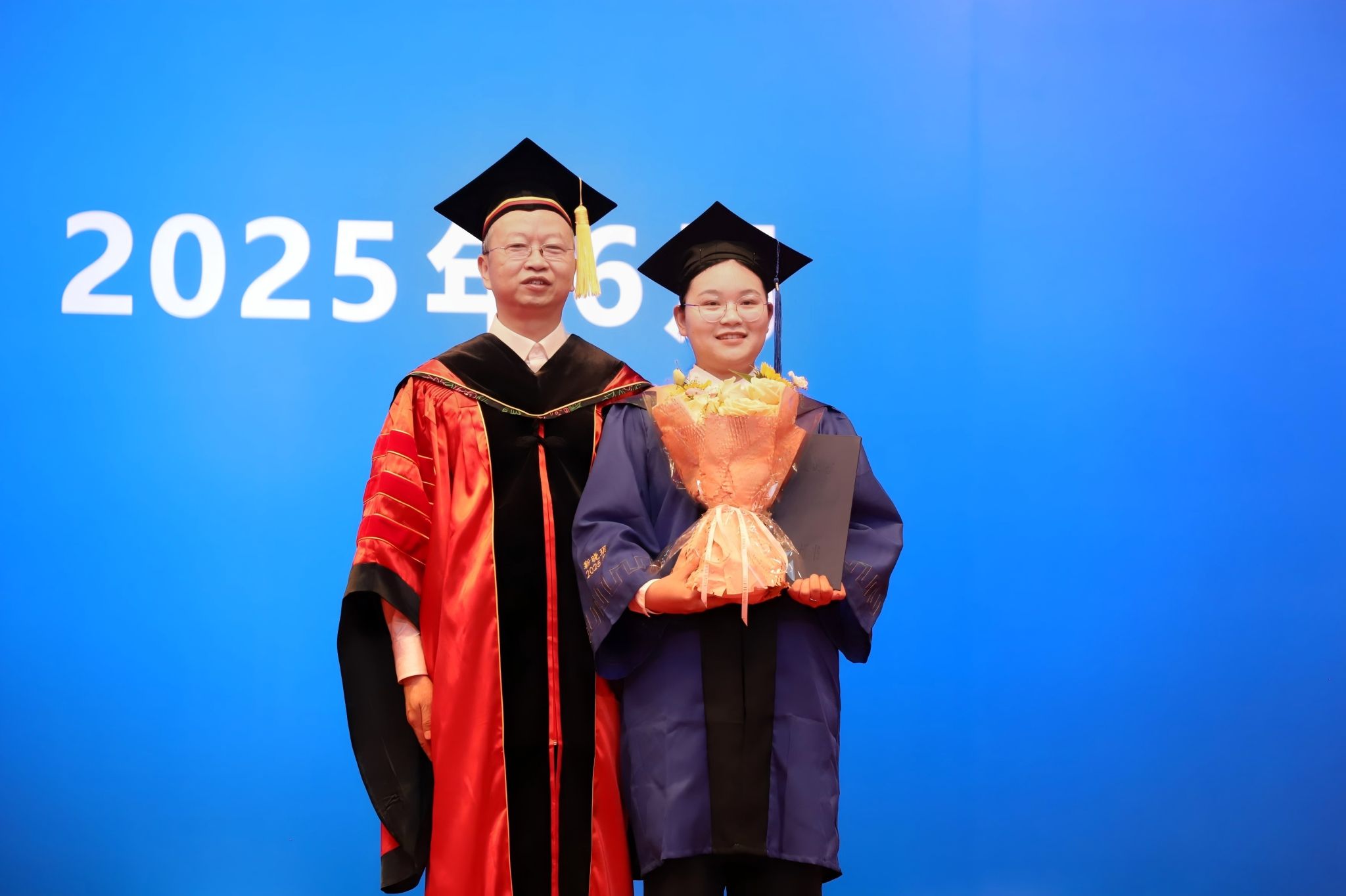 毕业生代表为老师们献上鲜花,感谢他们的谆谆教诲和辛勤付出。