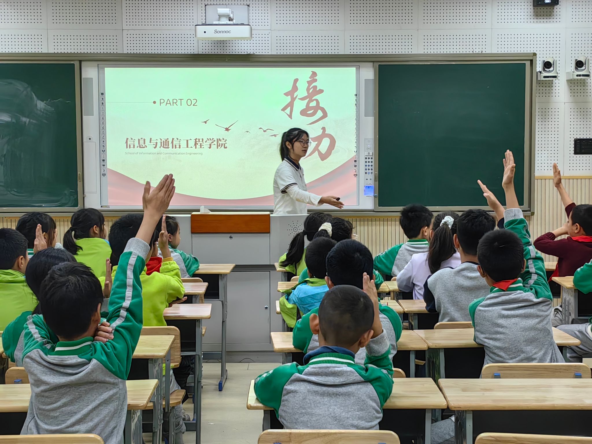 她还介绍了信息与通信工程学科在科技领域的卓越贡献。北斗卫星导航系统总设计师谭述森院士,用22年实现中国卫星导航从无到有;杨建宇教授率领团队在雷达探测与成像领域取得多项重要成果。最后,她号召小朋友们在心里种下“好奇”、“担当”、“红色”三颗种子,接过科技报国的“使命接力棒”!