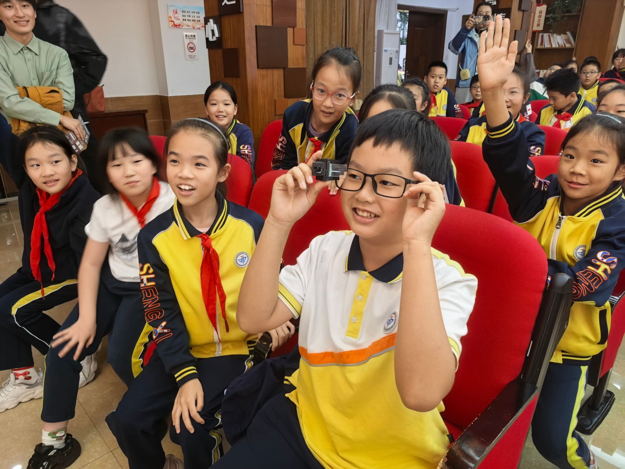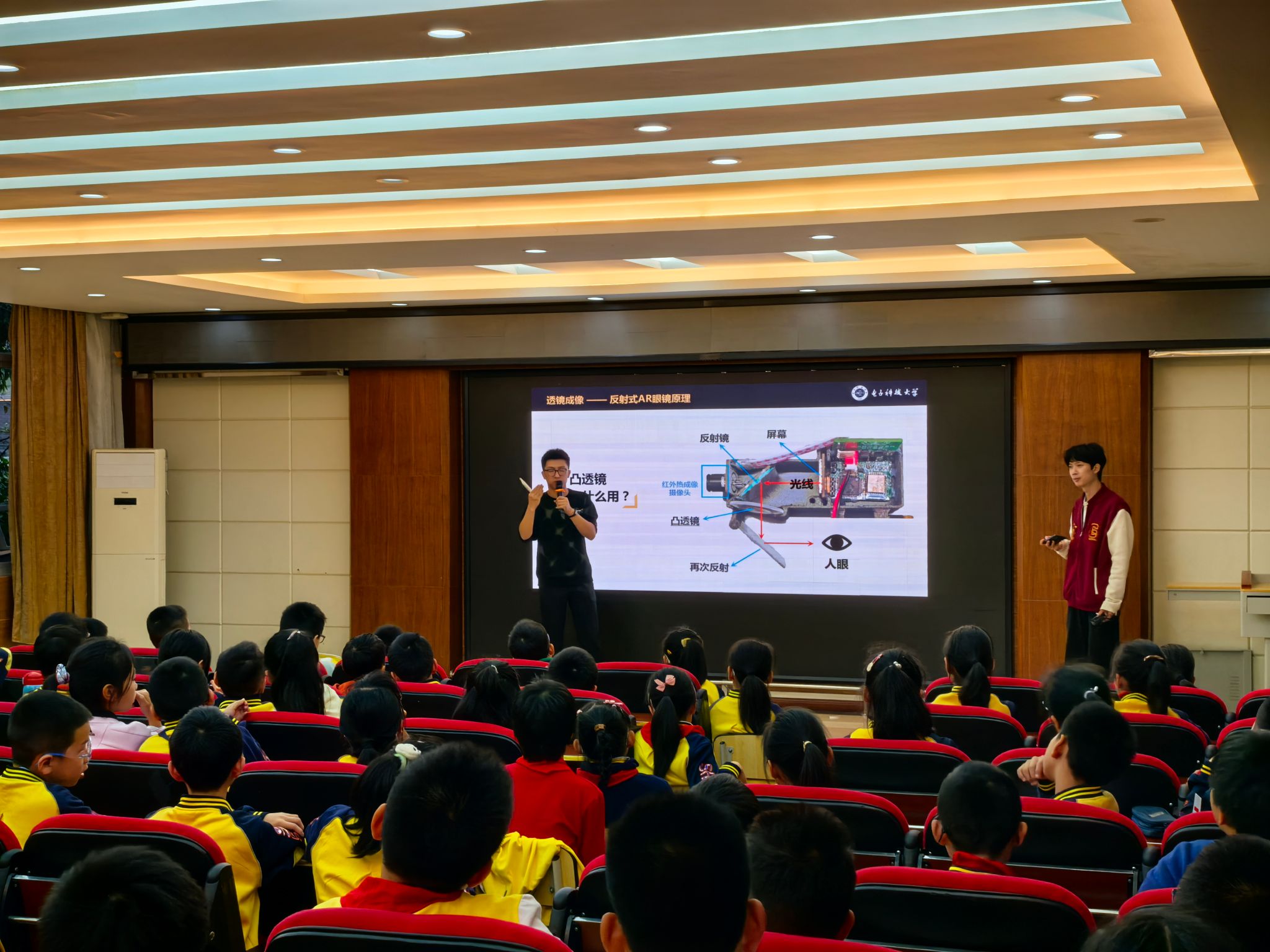 信通科协成员毛青山用简单易懂的语言向孩子们展示热成像AR眼镜的构造与原理。“这副眼镜不同于普通眼镜,它搭载了红外热成像组件,能将物体的温度转化为色彩图像,让我们能“看见”温度。随后,他向孩子们展示如何通过手机连接蓝牙功能,实现实时交互,并鼓励小朋友们要大胆想象,勇敢地去探索科技领域。彭成谨同学以“超声波的秘密”为切入点,生动讲解了超声波的原理及其在生活中的广泛应用,逐步引导小学生们思考-发问-再思考,他还鼓励小学生们就此开展课下思考,不断积聚对科技的兴趣。