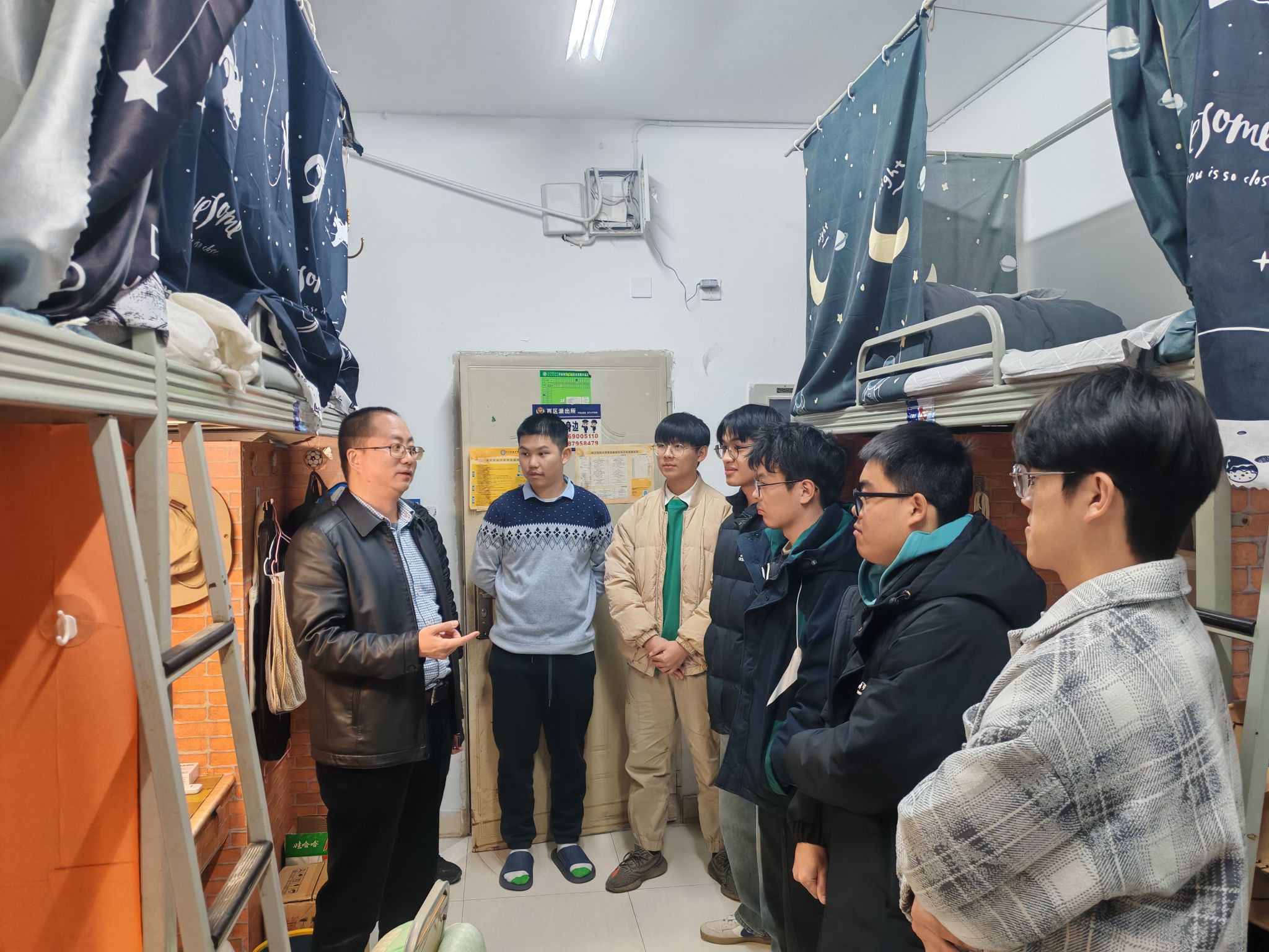 首先,蒋迪走进学生宿舍与同学们深入交流,细致询问大家的日常生活状态、课程学习难点及当前面临的发展困惑。从专业课学习压力到科研入门的迷茫,从考研备考的焦虑到就业方向的纠结,蒋迪认真听取每位同学的诉求并予以解答。