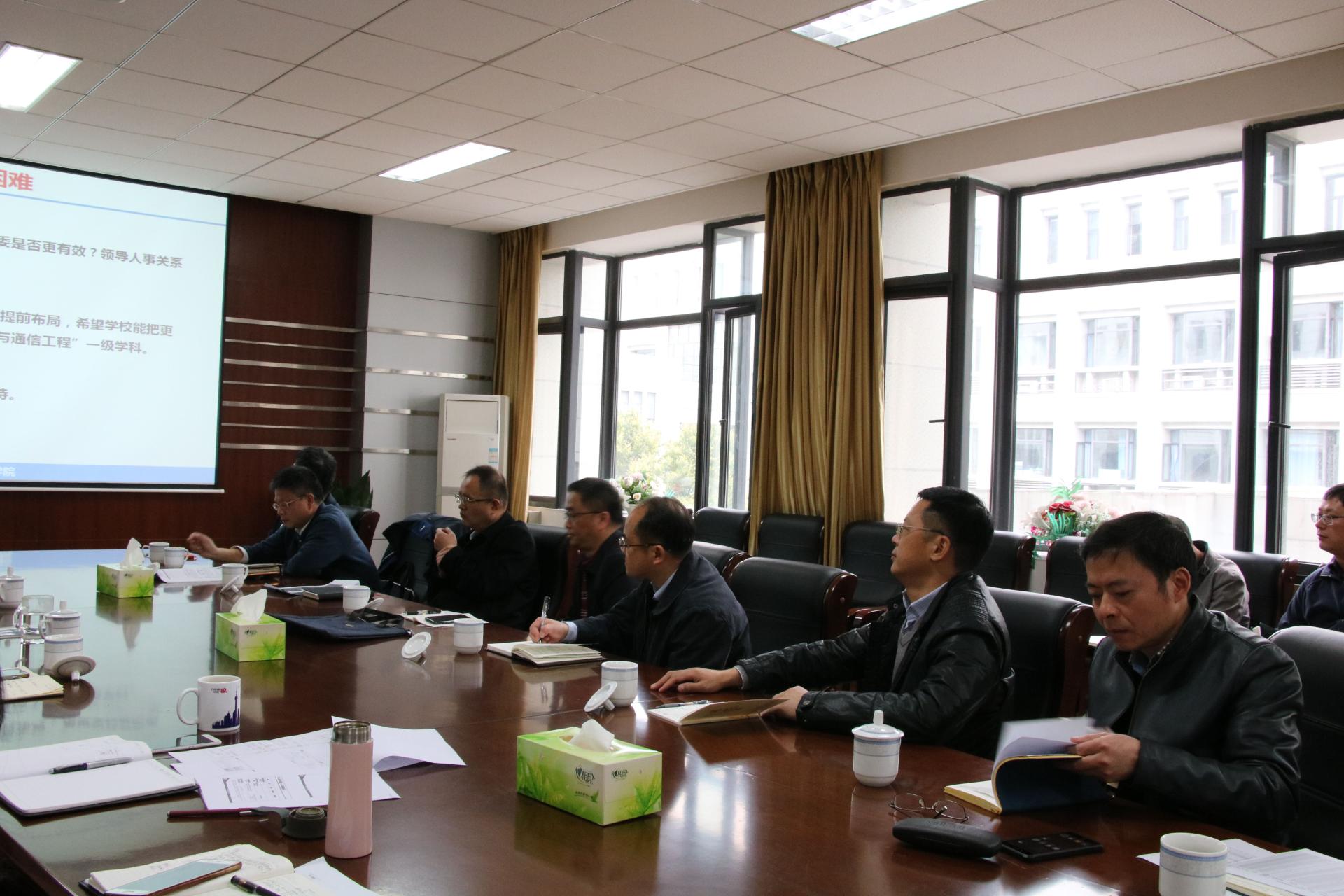 学校各个职能部门负责人就教师队伍、科学研究、人才优化、本科生和研究生培养、学院精品课程建设等方面的问题进行了建议交流,并从国家级奖项、教学名师、教材出版、高水平教改论文、学院特色和优势等方面指出学院下一步需要重点关注的方面。