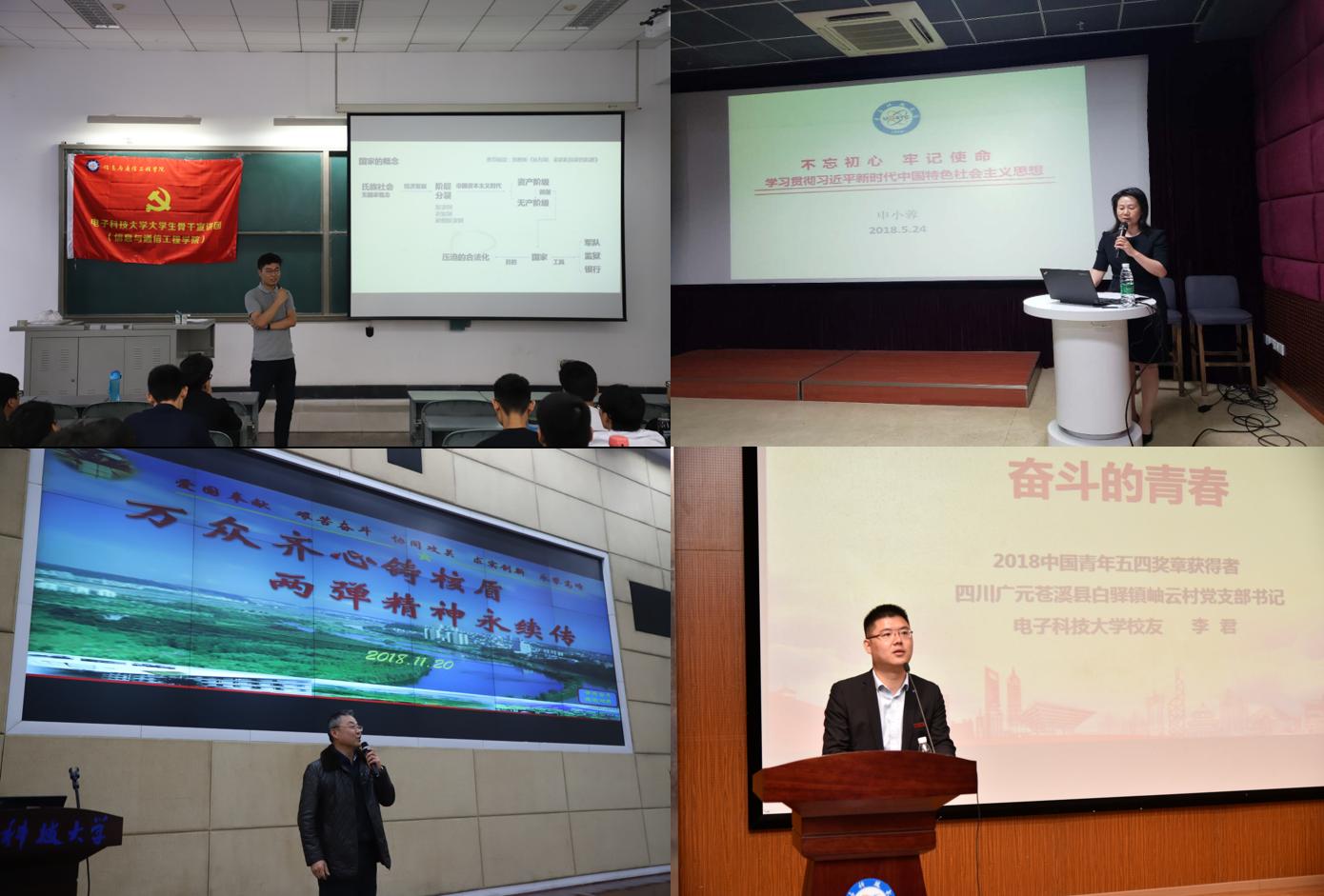 筑牢思政工作阵地,推进三全育人,利用“学习强国”学习平台,将线上学习与线下研讨相结合,并组织安排理论宣讲团定期开展理论巡讲活动;继续推进师生理论学习“每月一课”,自2018年5月“每月一课”活动启动以来,学院组织师生开展理论学习10余次;继续深入推进“信通思政工作坊”平台建设,该平台在2018年度中国电子教育学会优秀工作案例评选中荣获一等奖。