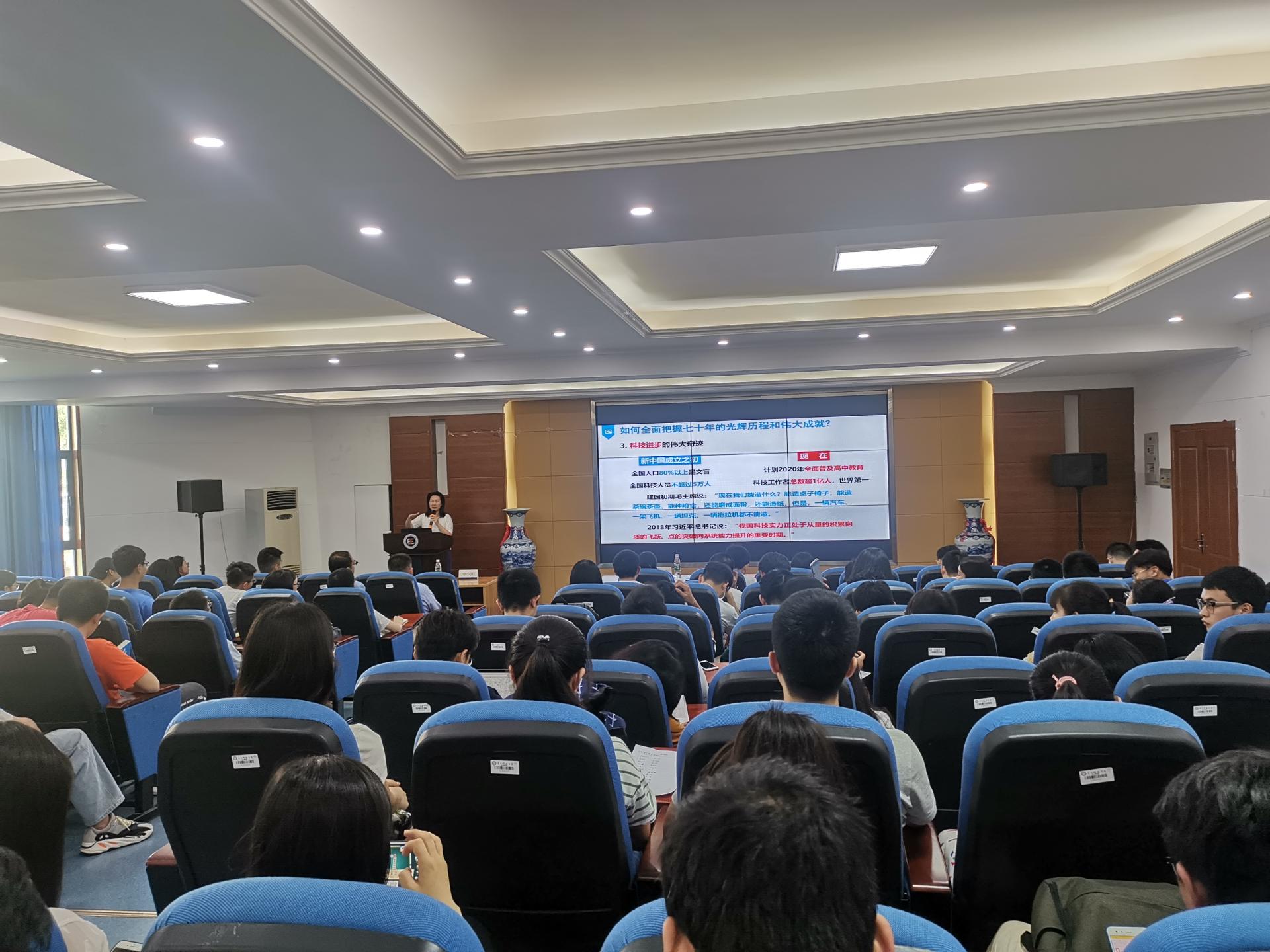 今年正值新中国成立七十周年,申小蓉以“辉煌七十载 奋进新时代”为主题,向大家讲述了新中国发展七十载的伟大变化和飞跃。她从“如何全面把握七十年的光辉历程和伟大成就”和“如何拼搏奋斗在中国特色社会主义的新时代”两个方面,结合生动实例,带来理论的精彩宣讲和解读,希望青年学生党员"不忘初心 牢记使命",为实现中华民族的伟大复兴奋进新时代!