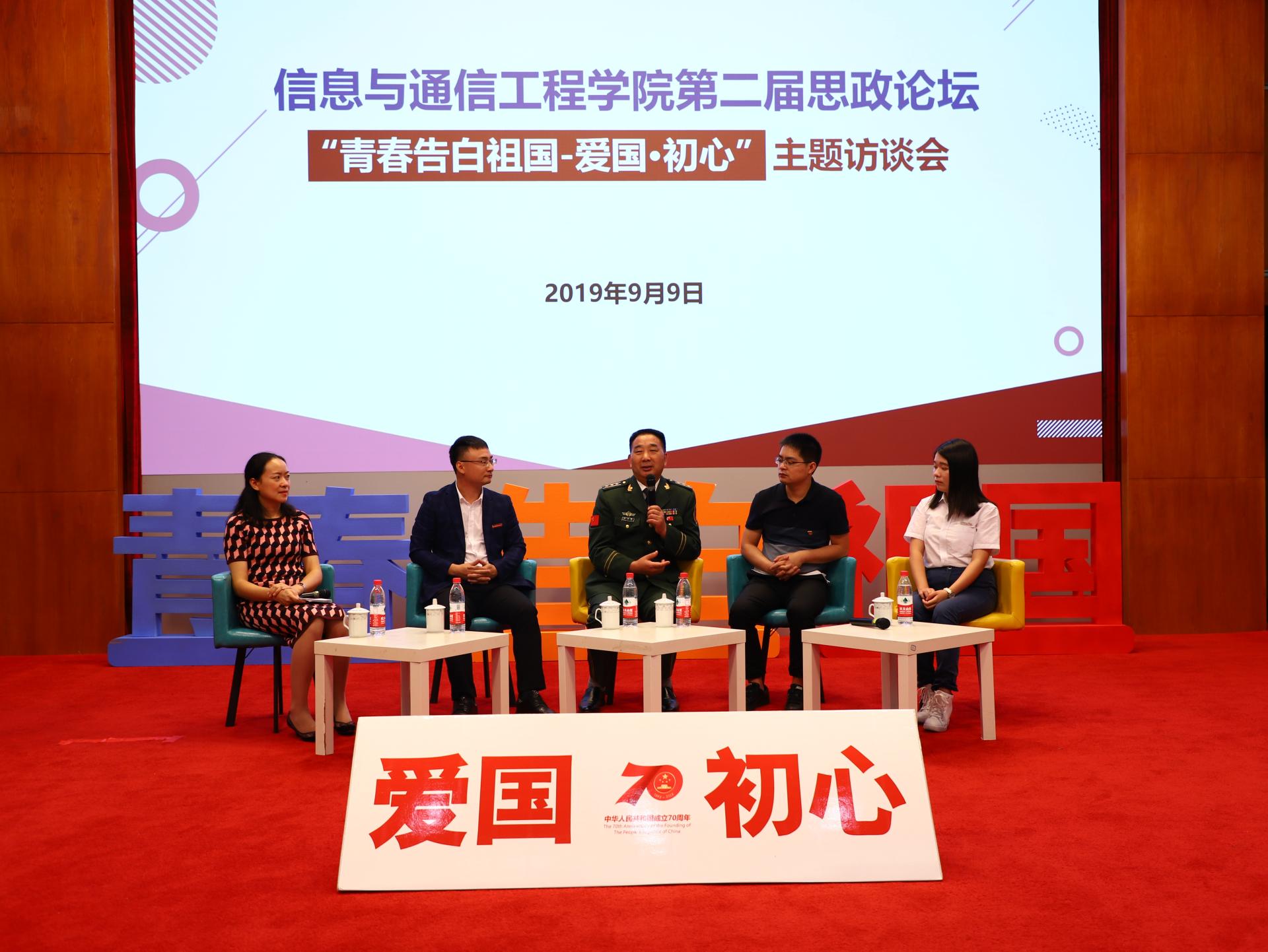 为了在学院师生中广泛弘扬爱国主义精神,激励广大师生立足新时代,强化新使命,用热血青春告白伟大祖国。william英国中文举行第二届思政论坛——“青春告白祖国-爱国初心”主题访谈会。访谈会由学院党委副书记杨晓玲主持,校党委学生工作部部长钱云光、信息与通信学院党委书记李玉柏出席。