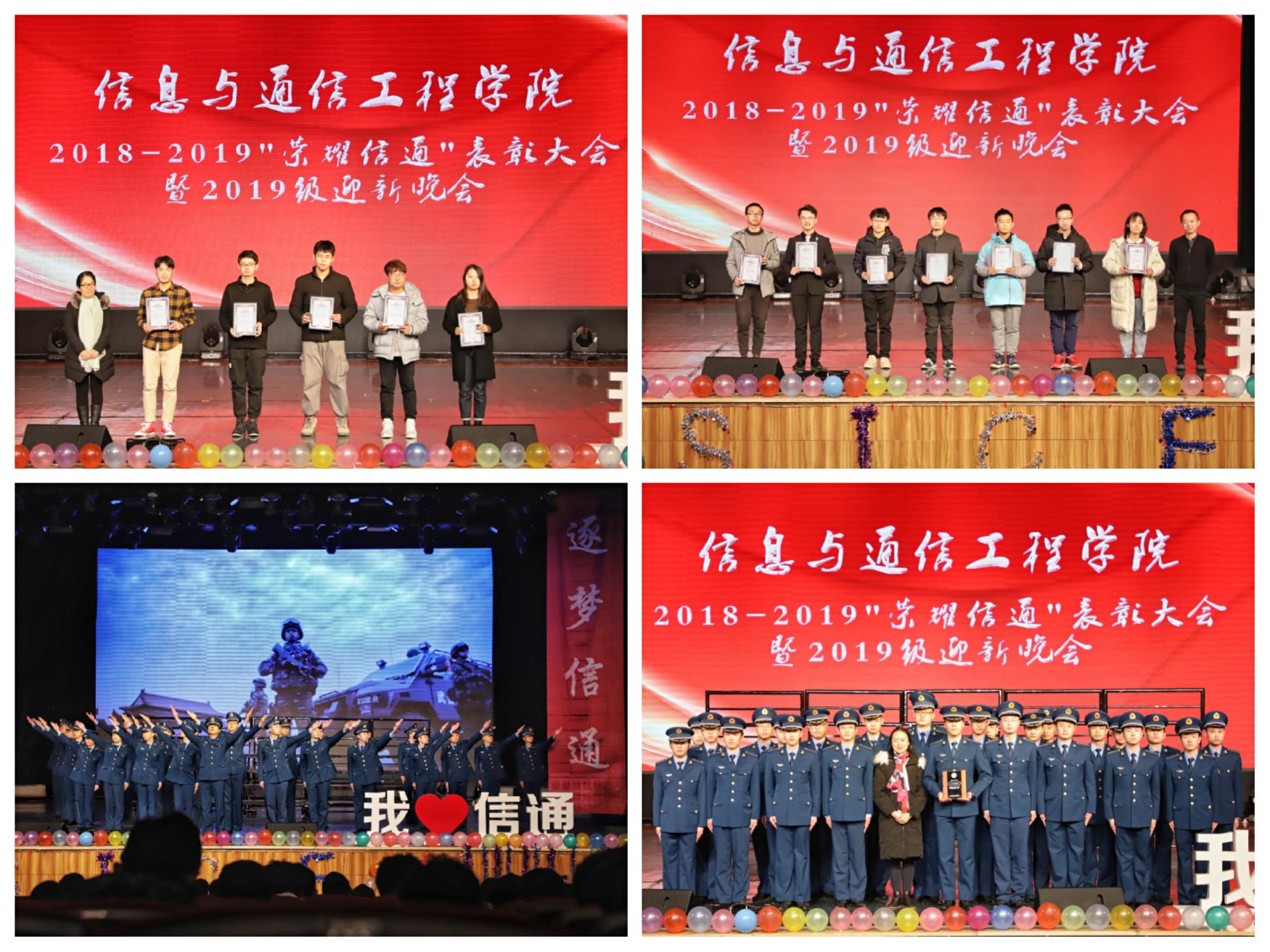 视频结束后,表彰环节正式开始,本次“荣耀信通”奖项设有求实求真,勤学信通板块奖项,表彰求实求真,刻苦努力的学习精神;设有全球视野,博文信通板块奖项,表彰走出国门,观览世界风采的勇气;设有担当奉献,奋斗信通板块奖项,表彰创新不断,将灵感化为实践的智慧与汗水;设有文体绽放,多彩信通板块奖项,表彰全面发展,书写多彩人生的追求;设有热血拼搏,强军信通板块奖项,表彰脚步铿锵的国防生;设有示范集体,凝聚信通板块奖项,表彰集体建设中有突出表现的集体;设有立己达人,贡献信通板块奖项,表彰朋辈帮扶,甘于奉献的精神;设有志成精英,荣耀信通板块奖项,表彰优秀年度组织;最后颁发荣耀信通年度人物奖,表彰综合素质突出的信通学子,并邀请王雨轩,余显祥为学弟学妹分享感悟心得。