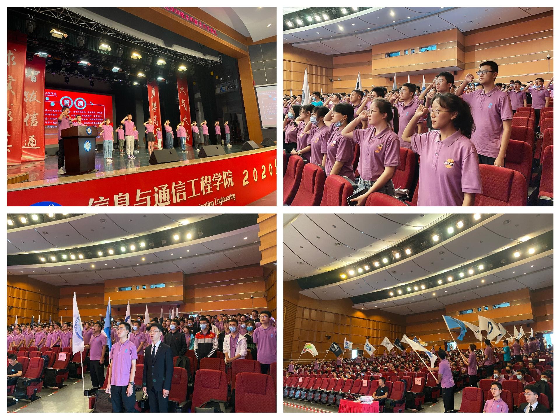 典礼上,2020级各班学生代表上台展示了精心设计的班徽和班训,以积极向上的风貌,迈向全新的大学生活。典礼最后,进行青春宣誓仪式,并学唱校歌《年华似锦》,新生们在庄严的宣誓和雄壮的歌声中开启了大学生活。